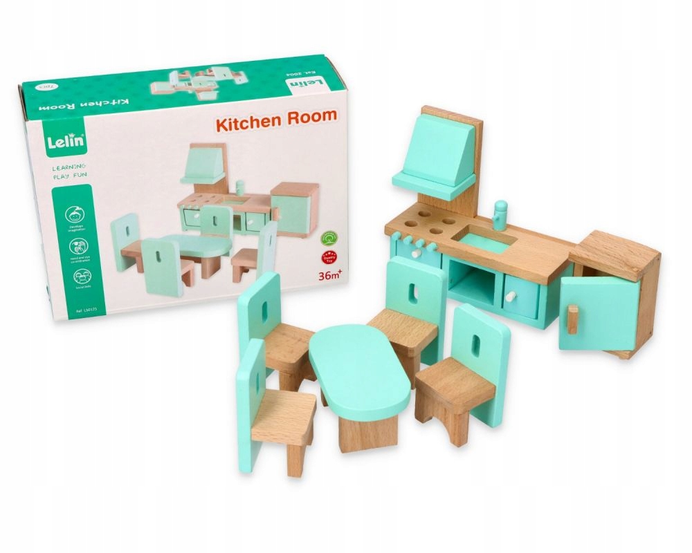 Оновлений набір кухонних меблів у нових модних кольорах — чудовий варіант для купленого лялькового будиночка.