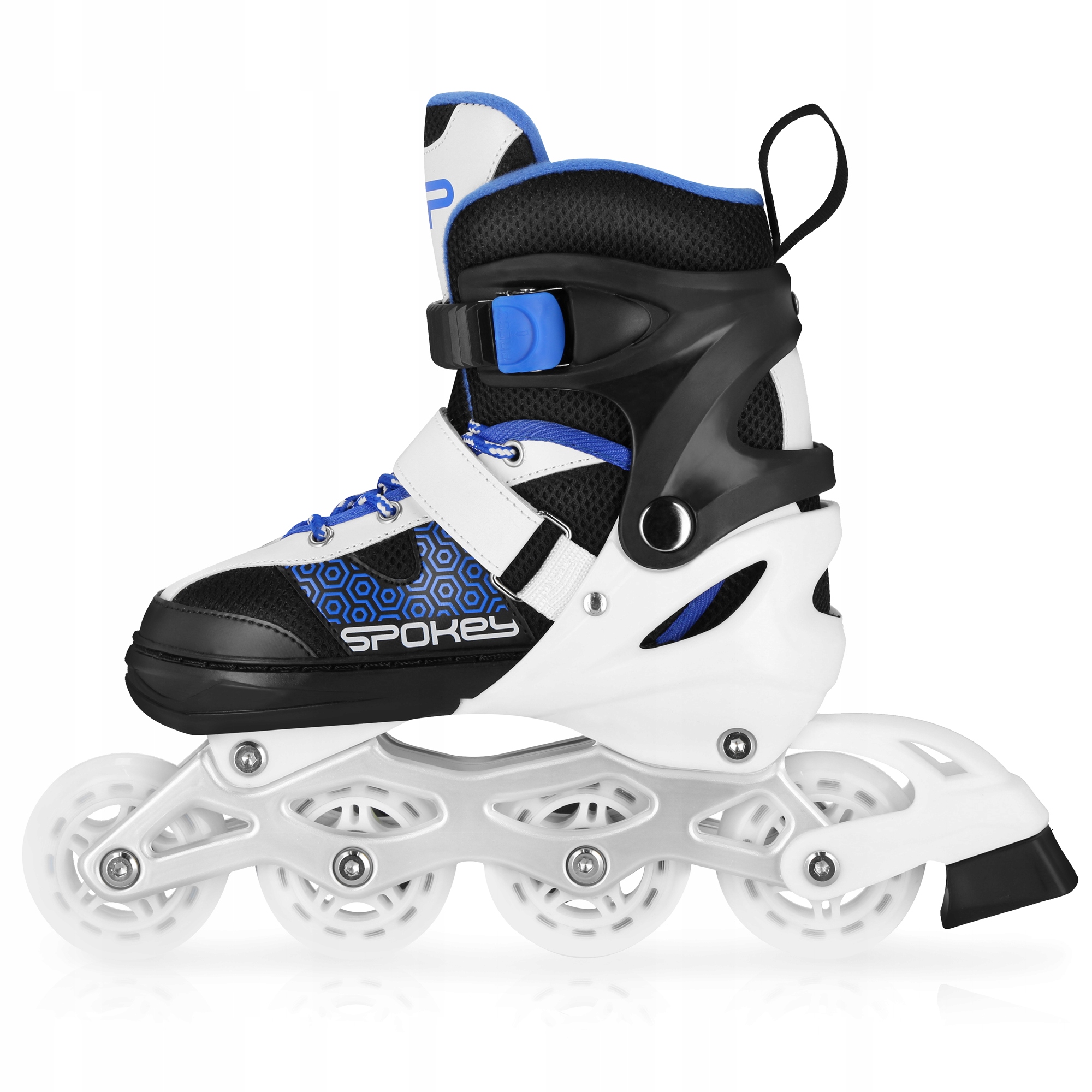 Щоб полегшити балансування тіла та підвищити маневреність під час катання, ми використовуємо різні розміри коліс у роликових ковзанах Spokey TONYX залежно від вибраного розміру.
