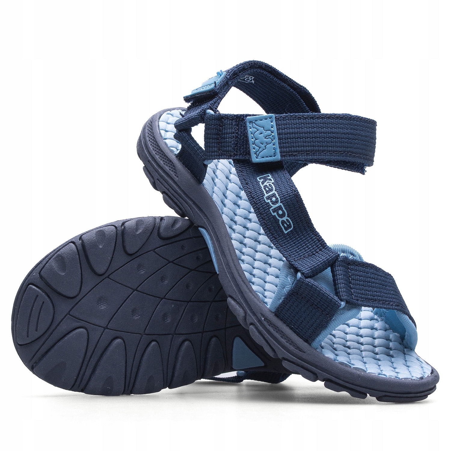Темно-сині дитячі босоніжки Kappa 260772K-6764. Дитячі босоніжки Kappa стануть ідеальним вибором для літніх прогулянок і повсякденних справ. Босоніжки оснащені поролоновою вставкою з м'якого синтетичного матеріалу, що забезпечує комфорт і амортизацію. Дитячі босоніжки мають гумову підошву, яка забезпечує зчеплення з землею і, отже, безпеку на мокрій поверхні. Регульована система ремінців на липучках гарантує ідеальне прилягання до ширини та форми стопи.