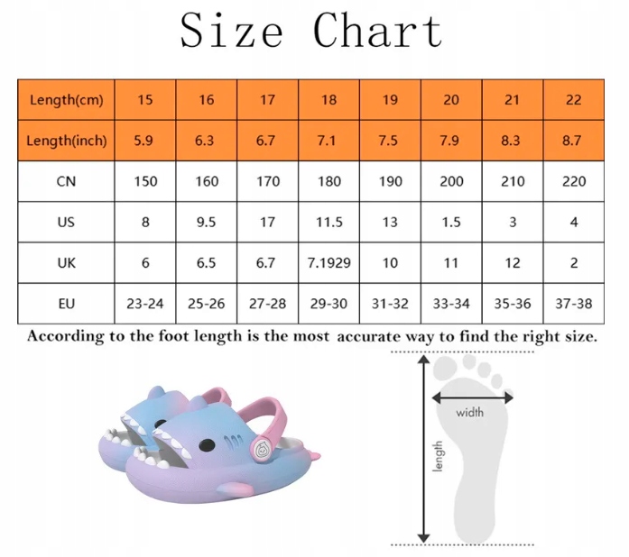 - Зовнішній матеріал: EVA. Милий тривимірний малюнок акули робить ці тапочки милими.
