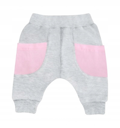 Дитячі брюки для дівчинки сірого меланжу. Виготовлена з надзвичайно м'якої бавовни, яка дбайливо ставиться до шкіри малюка, забезпечуючи зручність і комфорт носіння, а також правильну терморегуляцію. Талія і ніжки оброблені м'яким ніжним манжетом, завдяки чому одяг ідеально сидить на ніжці дитини. Кишені на передній частині одягу вміщають усі скарби допитливої принцеси.