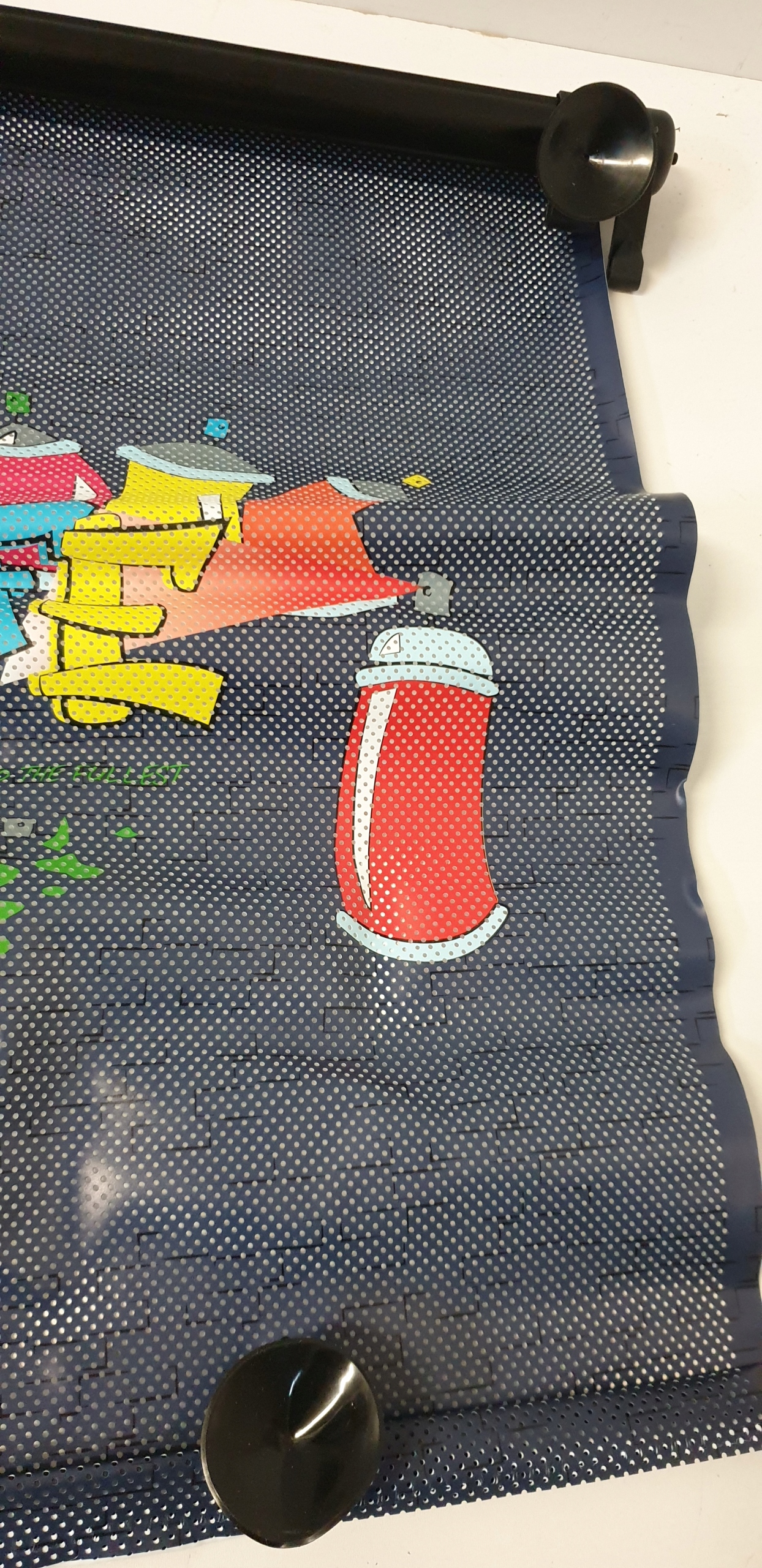 - Наші сонцезахисні штори в модному графіті чудово захищають крутих хлопців від прямих сонячних променів і таким чином захищають їх від настирливих сонячних опіків.