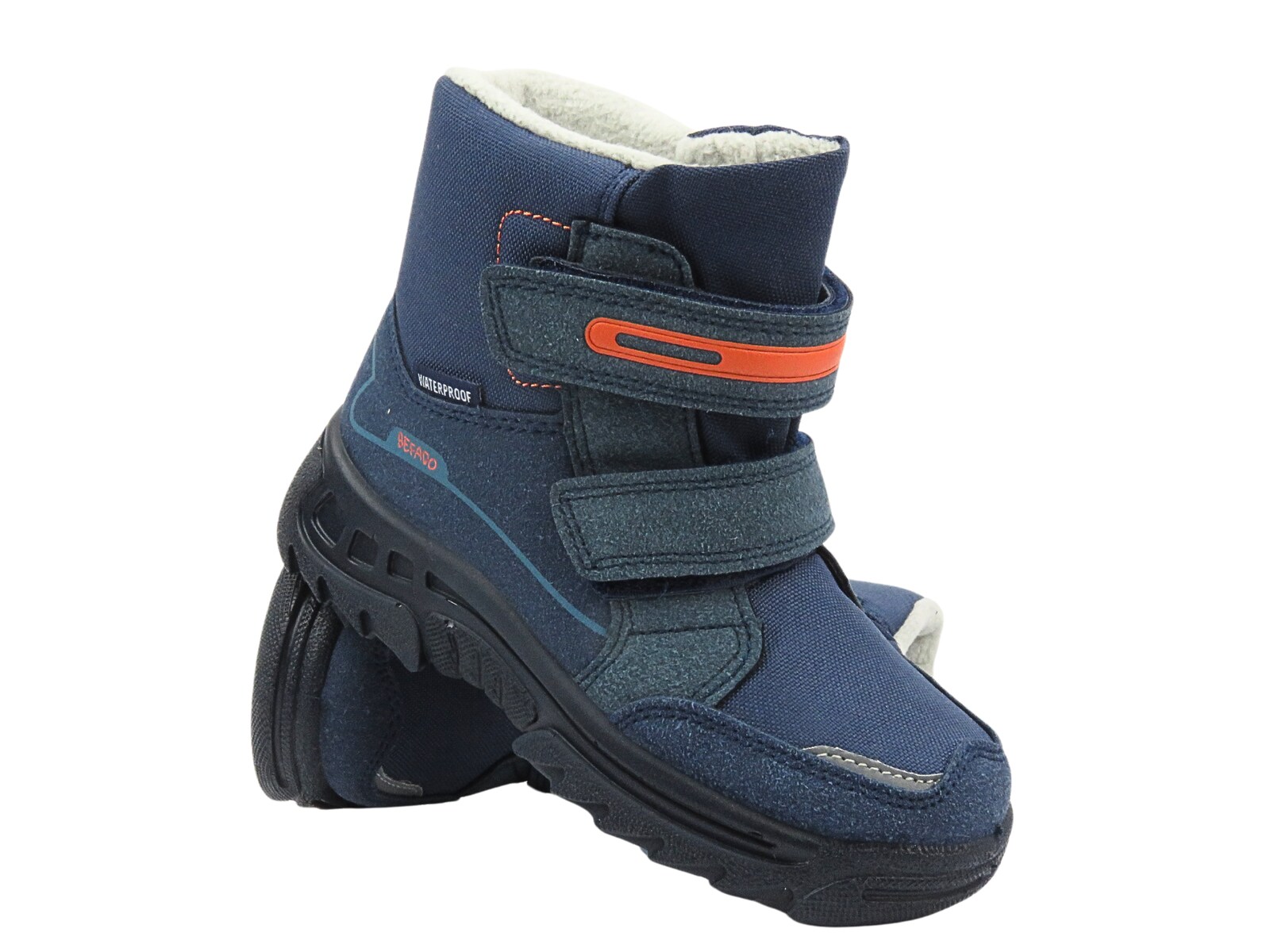 дитячі снігові чоботи befado були виготовлені ззовні високої якості водонепроникної тканини у темно -синьому кольорі.