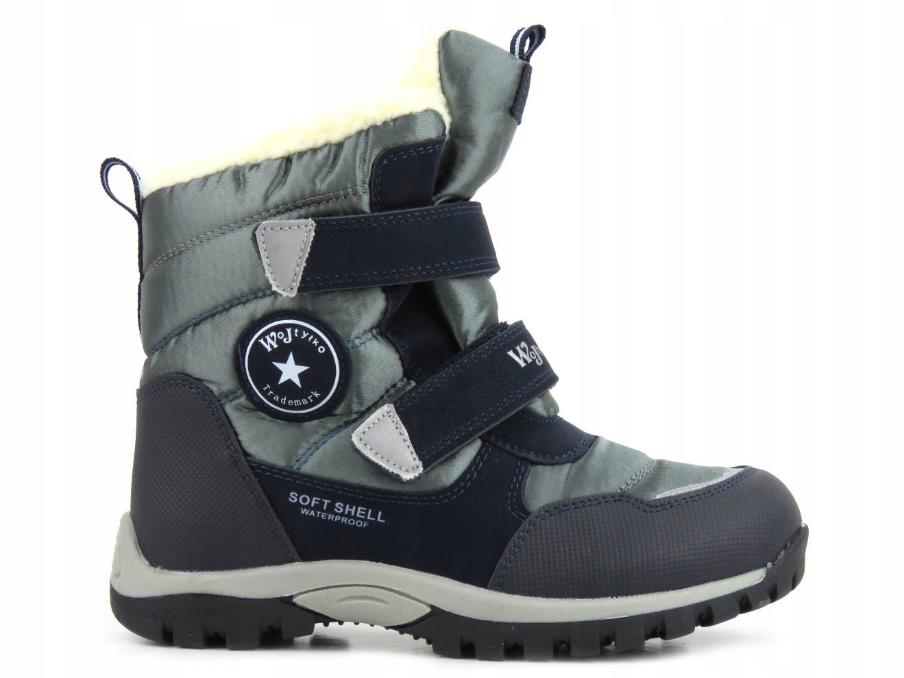 Верхній дитячі снігові чоботи wojtyłko виготовляли з використанням технологічного вдосконаленого матеріалу Softshell та мембрани w -tex . Softshell складається з спеціально вибраних шарів, які з'єднувались один з одним, збільшує захист від вітру та дощу, забезпечуючи при цьому належну вентиляцію всередині взуття. Зовнішні шари Softsehell забезпечують стійкість до вітру та більш високу стійкість до води , тоді як його внутрішні шари дозволяють підтримувати адекватний рівень тепла в середині взуття. Мембрана підвищує рівень захисту від води та регулює температуру . Весь має дихаючі властивості , а також м'які та гнучкі , завдяки якому він забезпечує високий комфорт. 4 Товсті, стабільні підошви ізоляції від землі та мають властивості, що не мають слизу . Це дуже важливо взимку, коли воно слизько і небезпечно. жорсткий п’ята впливає на правильне розташування ніг. Кріплення для двох липучок дозволяє ефективно надіти снігові черевики wojtyłko.