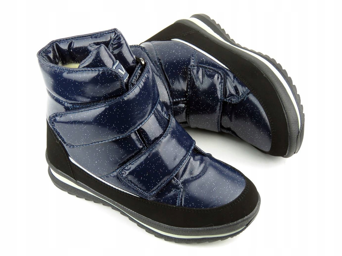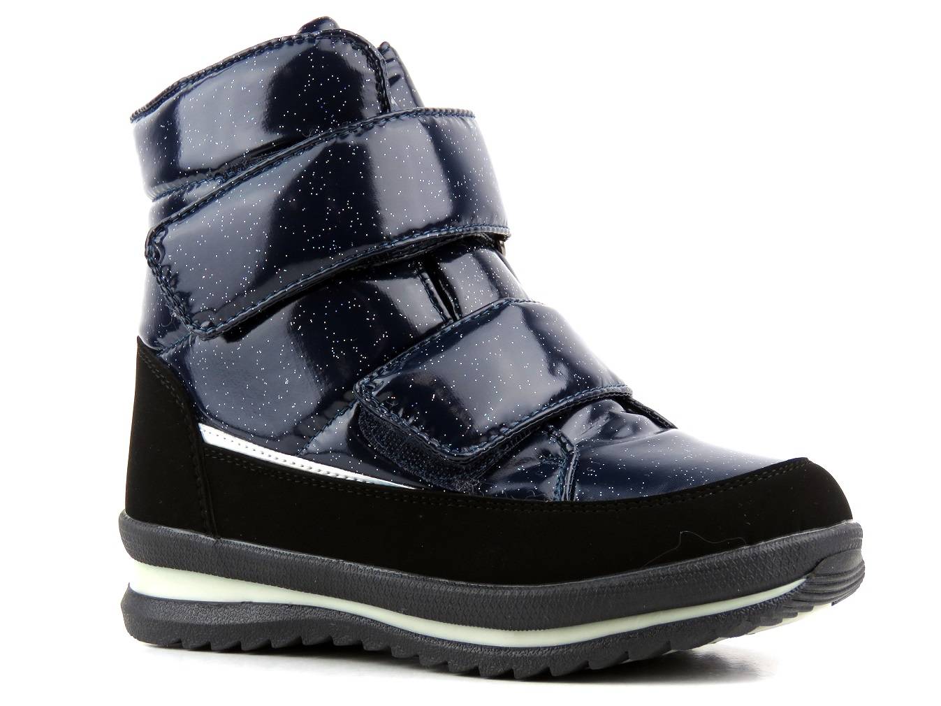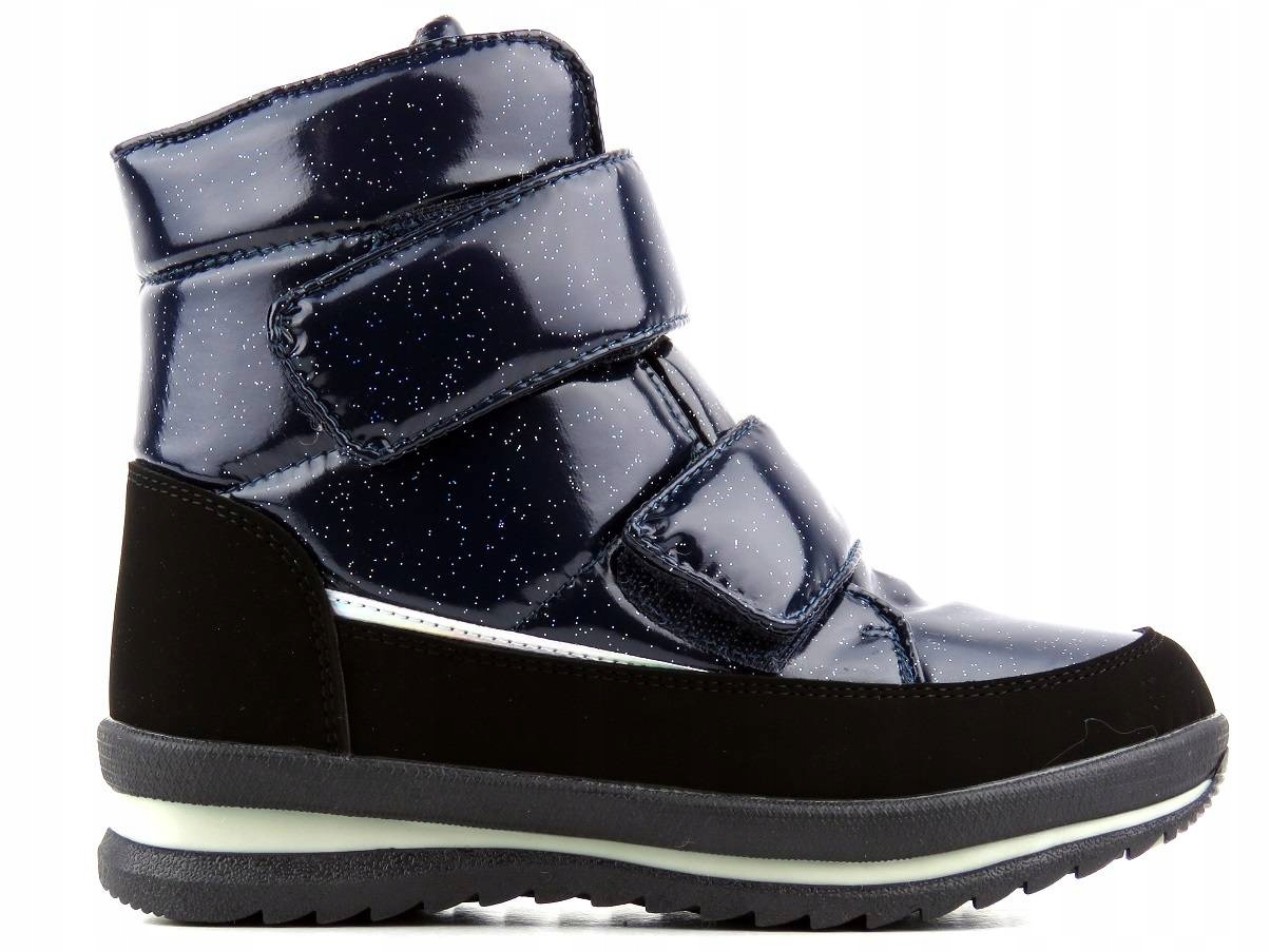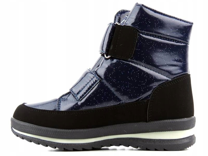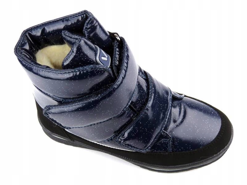 Представлена модель - це дитячі снігові черевики, виготовлені з екологічної шкіри в поєднанні з текстильним матеріалом. Інтер'єр був покритий натуральною шерстою , що забезпечує м'якість, комфорт і теплоту. Завдяки округленим, широким Тоасом пальці дитини не пригнічені. Це підтримує належний розвиток стопи. Підошва була побудована таким чином, щоб вона була максимально гнучкою і стійкою до стирання . Закріплюючи липучку, модель можна легко встановити та адаптувати до необхідної ширини.