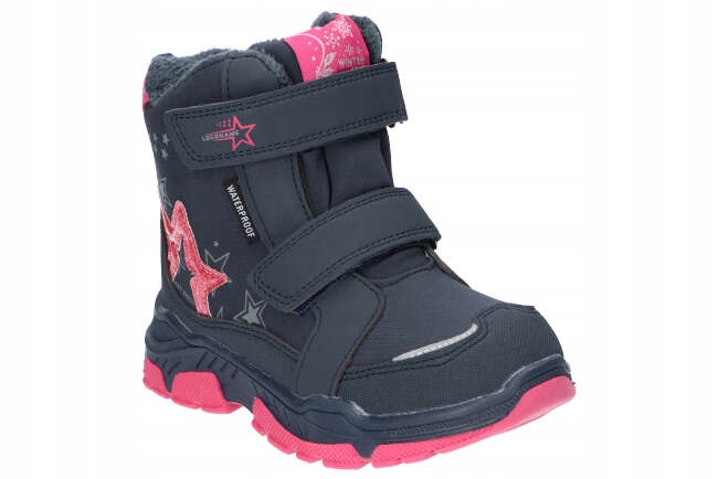 Дитячі сніжні черевики софтшел ідеально підходять для зимових прогулянок та ігор на снігу. Темно-сині туфлі з рожевим урізноманітнені милими візерунками зірок.