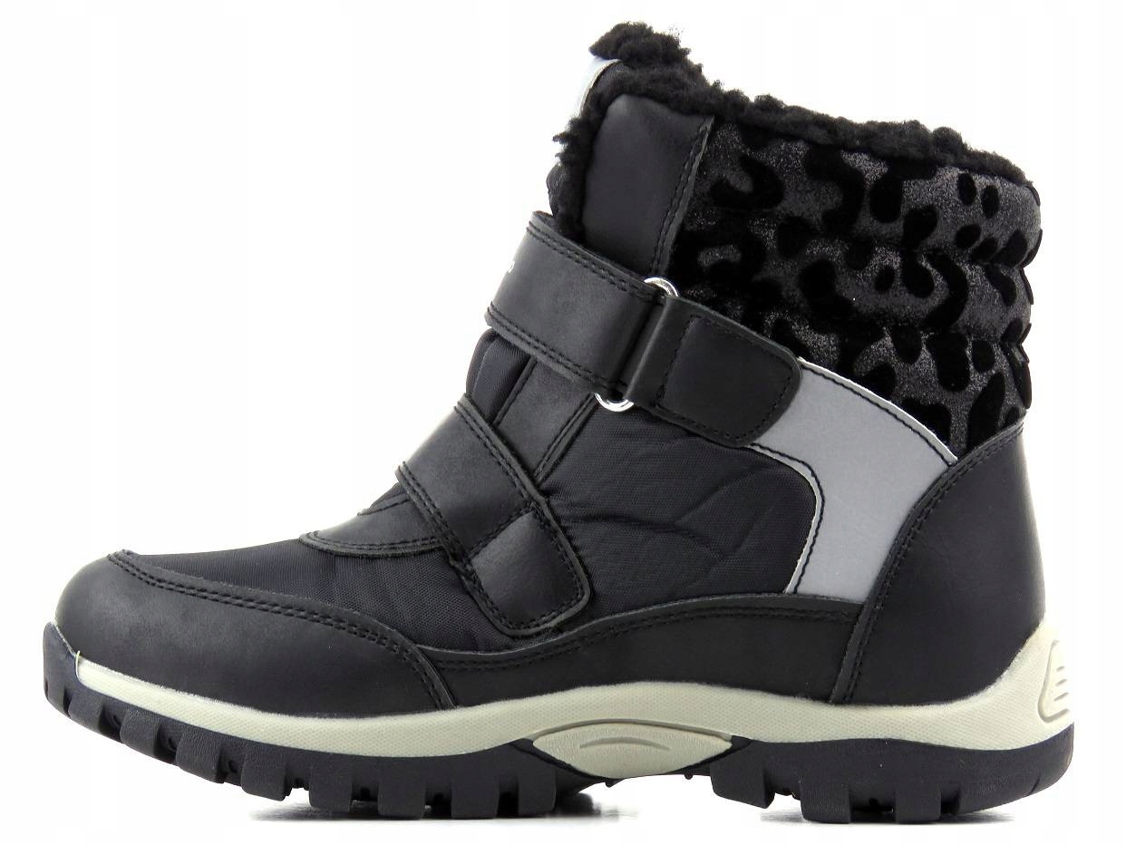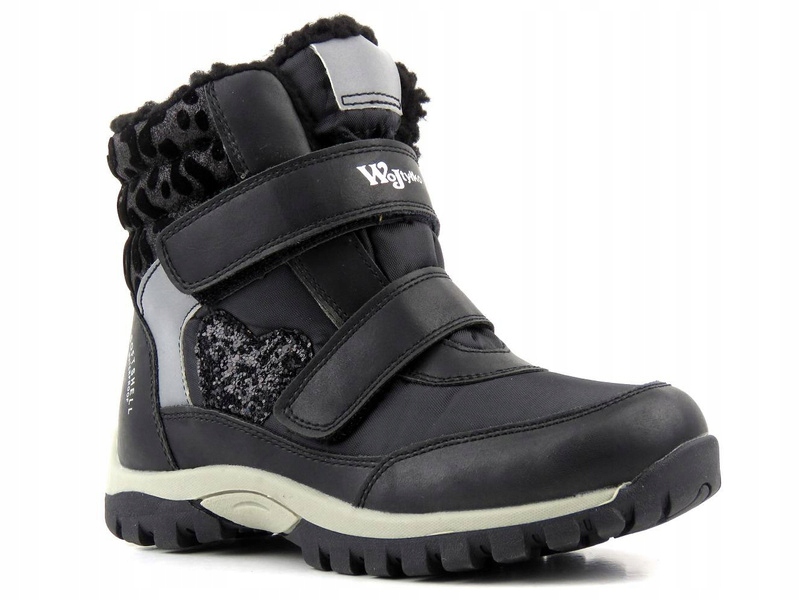 Верх дитячих снігових черевиків Wojtyłko виготовлено з використанням технологічно вдосконаленого матеріалу SOFTSHELL і ВОДОСТІЙКОЇ мембрани. SOFTSHELL складається зі спеціально підібраних шарів, які, з’єднані разом, підвищують захист від вітру та дощу, одночасно забезпечуючи належну вентиляцію всередині взуття. Зовнішні шари SOFTSEHELL забезпечують вітронепроникність і підвищену водонепроникність, а внутрішні шари дозволяють підтримувати необхідний рівень тепла всередині взуття. Все це має дихаючі властивості, а також є м'яким і гнучким, що забезпечує високий комфорт. Всередині утеплено дублянкою. Зручна застібка-липучка утримує стопу в потрібному місці. Підошва з агресивним протектором забезпечує хороше зчеплення з землею та стабільність при ходьбі.