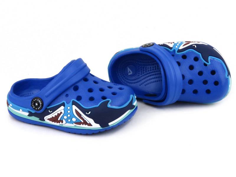 Дитячі шльопанці в стилі Crocs від American Club виготовлені з світла піна синього кольору.