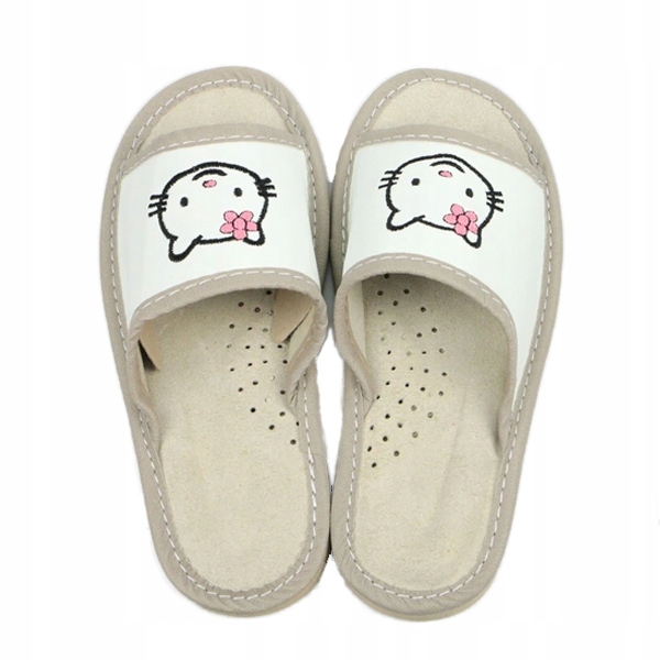 Дівчачі тапочки чудової якості — ідеальна пропозиція для любителів котів! Верх виготовлений з екошкіри, а вставка тапочок - з натуральної шкіри.