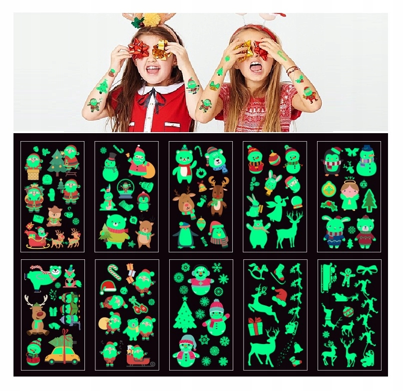 ДИТЯЧІ ТАТУЮВАННЯ, ЩО СВІТЯТЬСЯ В ТЕМРЯВІ 10 АРКУШІВ РІЗДВЯНІ МИКОЛАЇ