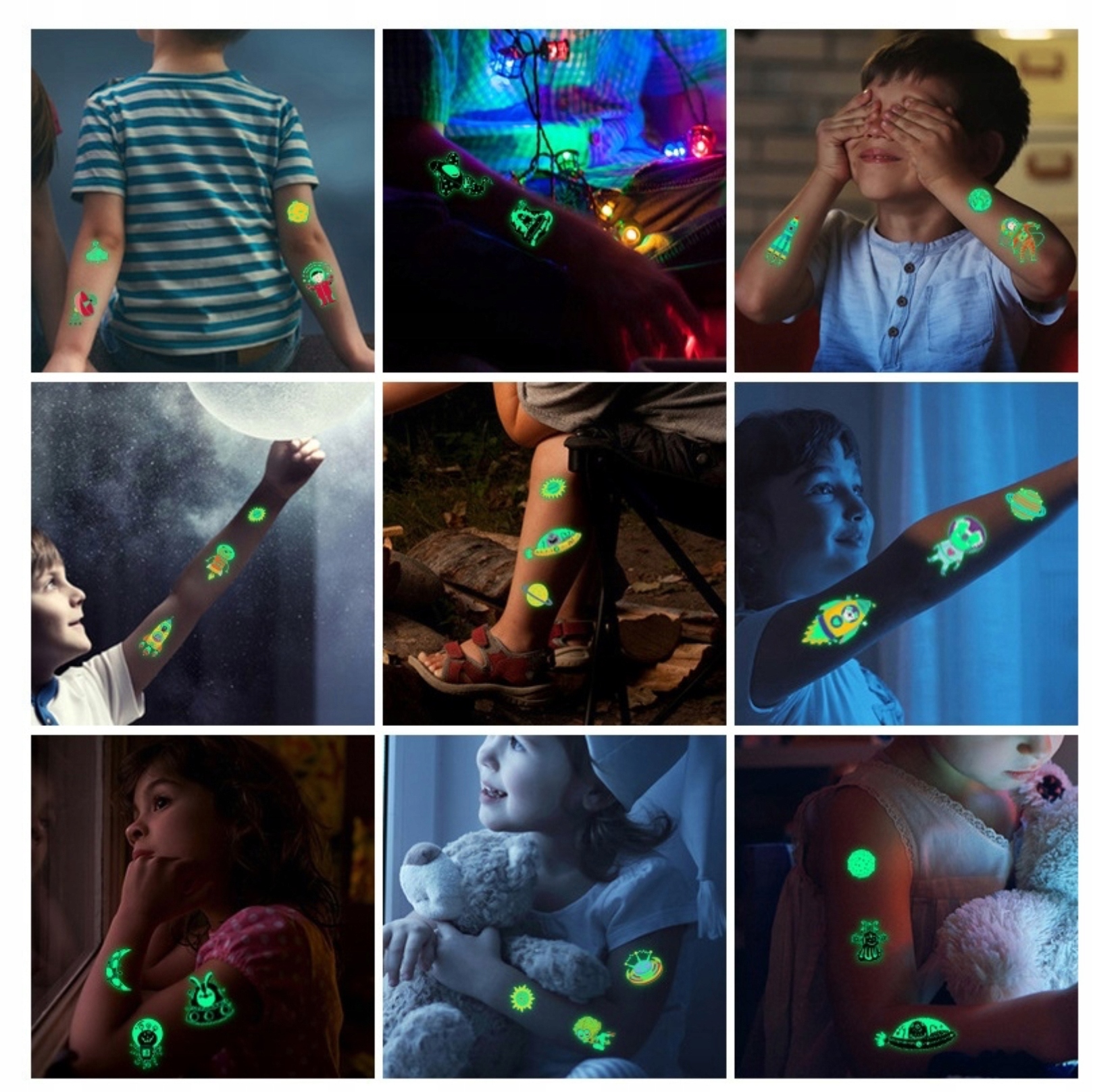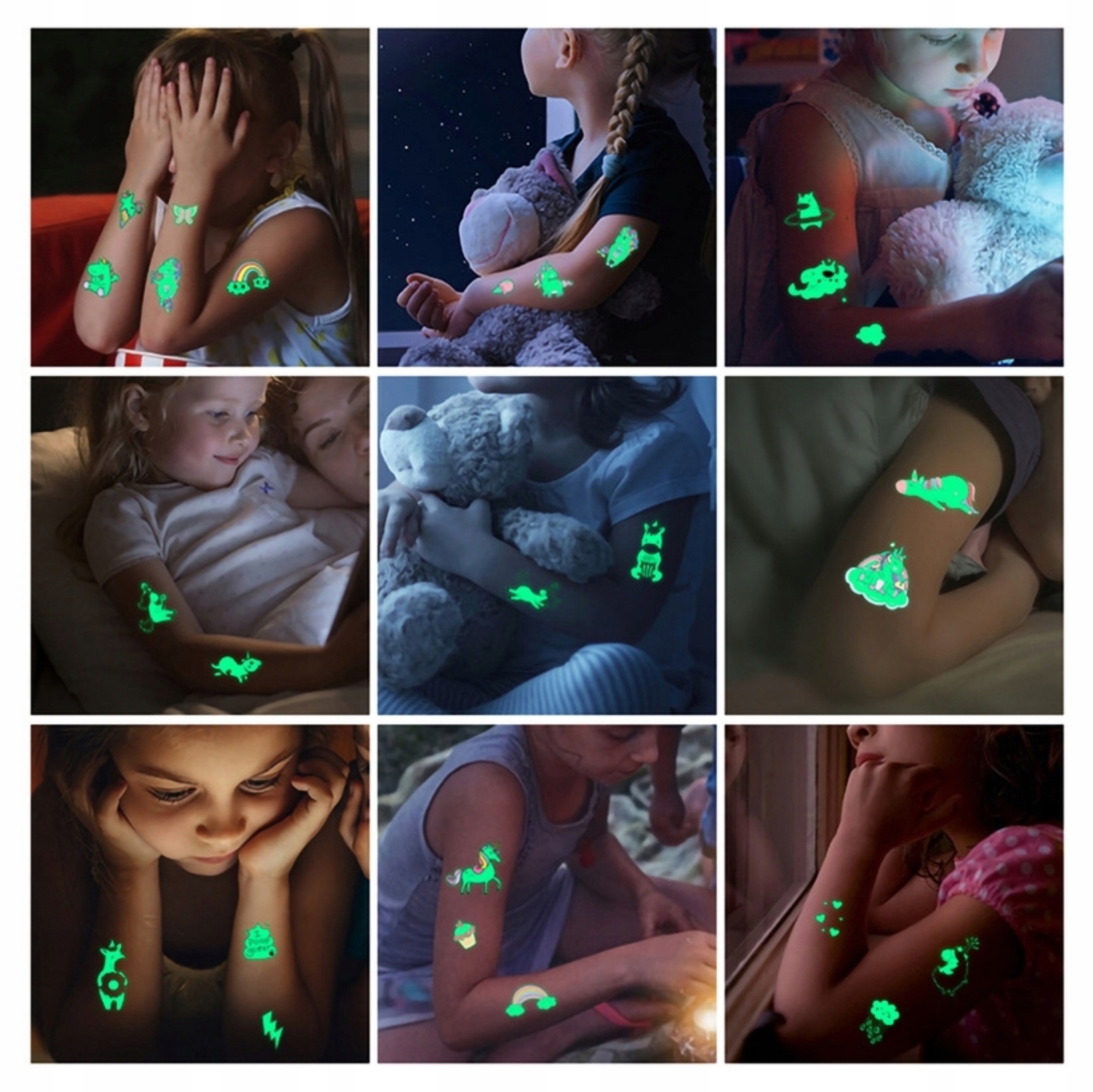 Дайте своїм дітям можливість перенестися у світ чарівництва за допомогою наших татуювань, які можна мити, які світяться в темряві!