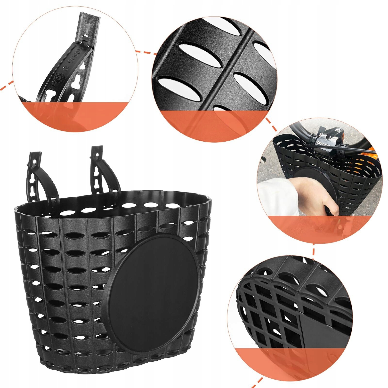 ✅Цей продукт — це кошик для велосипеда, виготовлений із пластику для міцного та тривалого використання. Він стійкий до води, подряпин і зносу. Його можна легко та зручно встановлювати та знімати. Ідеальна необхідність для велосипедних прогулянок на природі для зберігання дрібних речей і прикрас.