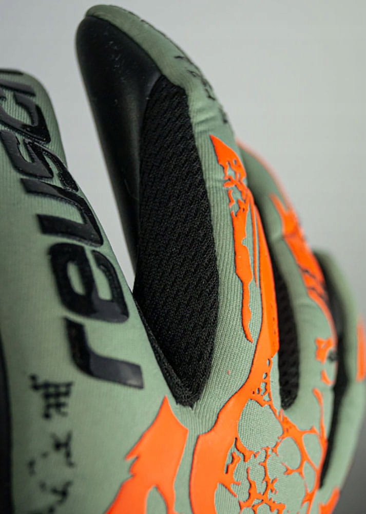 - EVOLUTION NEGATIVE CUT - латекс обернутий навколо кінчиків пальців, що забезпечує щільне прилягання, дуже хороший контроль м’яча та максимальну площу контакту між рукою та м’ячем. Конструкція з внутрішніми швами внизу пальців забезпечує щільну, м’яку, гнучку та ергономічну посадку.