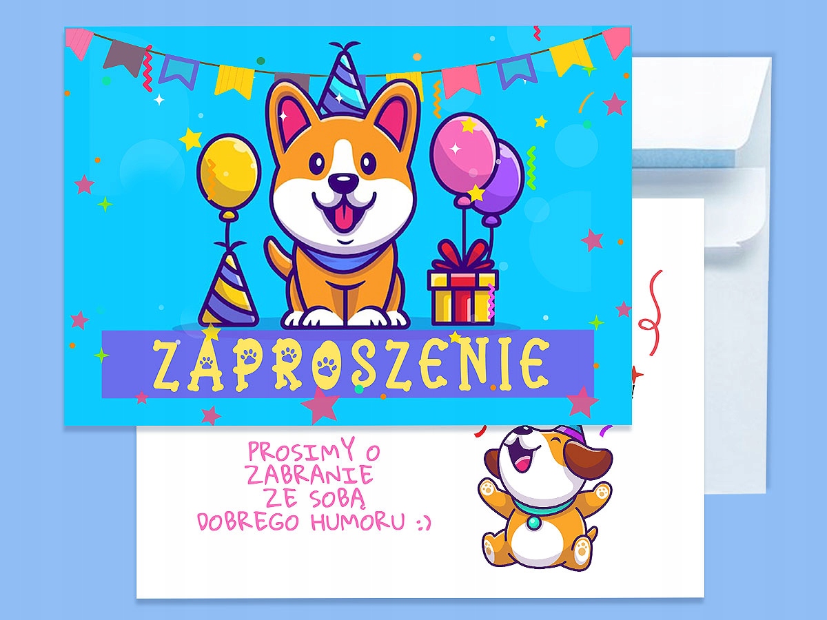 ДИТЯЧІ ЗАПРОШЕННЯ НА ДЕНЬ НАРОДЖЕННЯ СОБАКИ ТА СОБАКИ + КОНВЕРТ