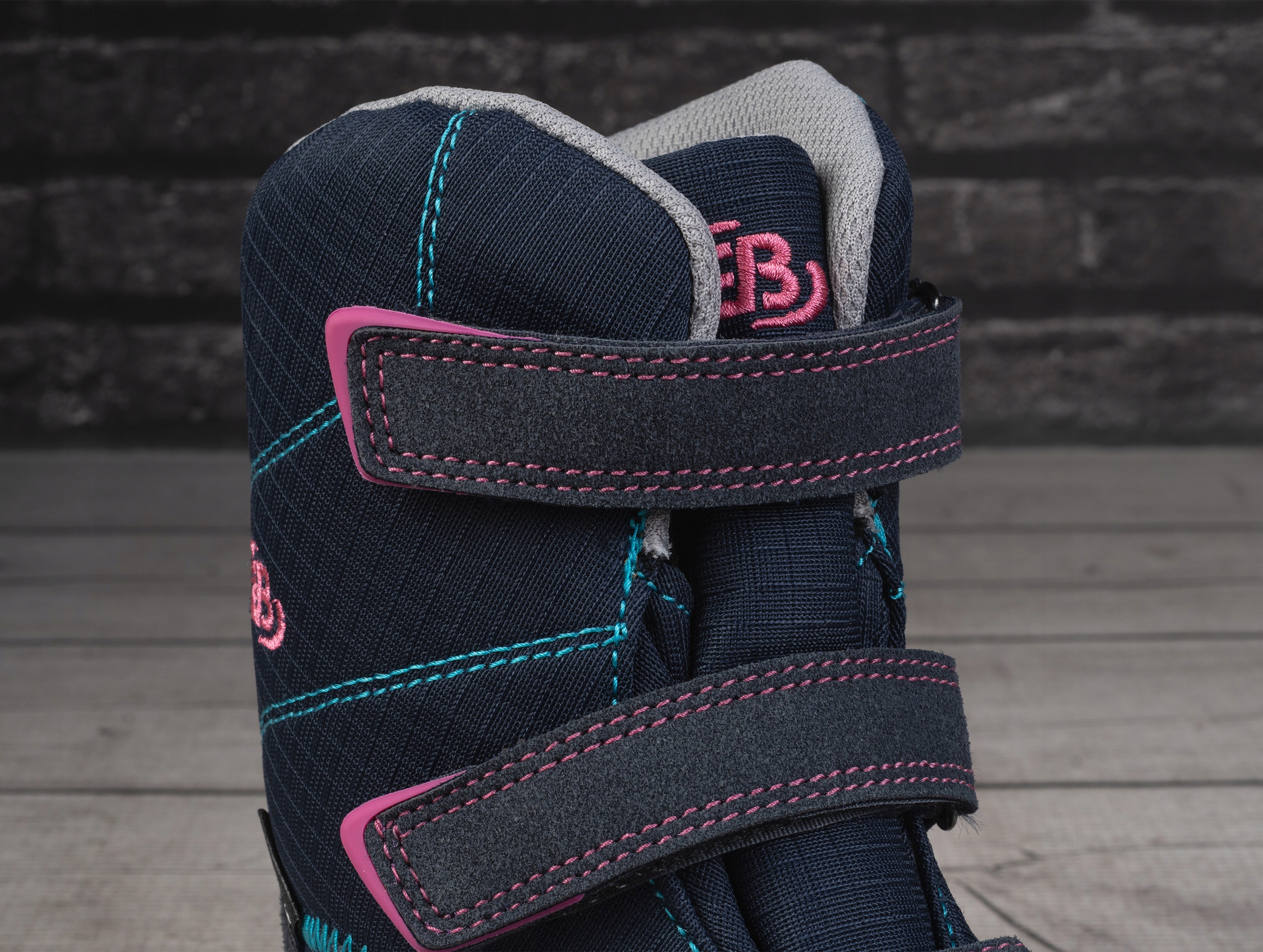 Легкий верх із комбінації синтетичного та текстильного матеріалів укріплений навколо нижнього краю. Комфортні застібки-липучки, зручний дизайн, амортизуюча підошва, утеплююча устілка та нековзка зимова підошва з протектором Vibram.