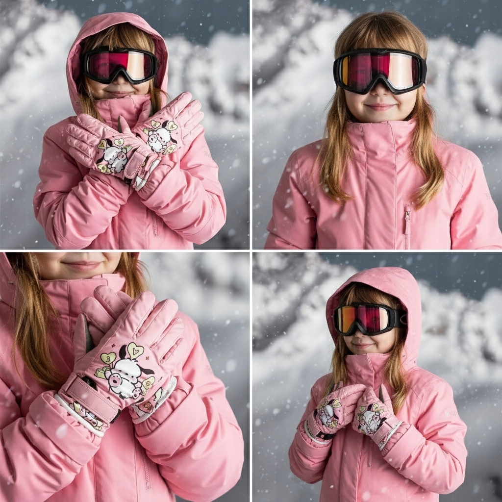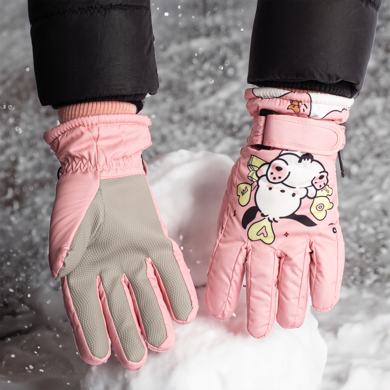 Внутрішня сторона рукавичок обшита м'яким плюшевим матеріаломзабезпечує тепло та комфорт. Чудова теплоізоляція зберігає руки в теплі, а еластичні манжети захищають від холоду та снігу, забезпечуючи кращу посадку. Ідеально підходить для зимових розваг протягом усього дня.