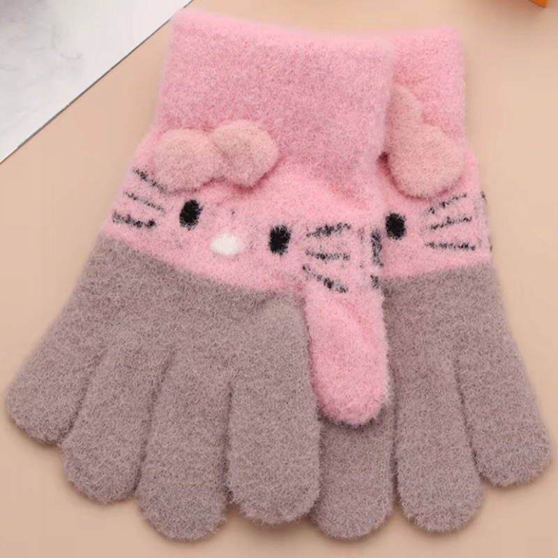 ДИТЯЧІ ЗИМОВІ РУКАВИЧКИ КОТ П'ЯТИПАЛИЙ РОЖЕВИЙ