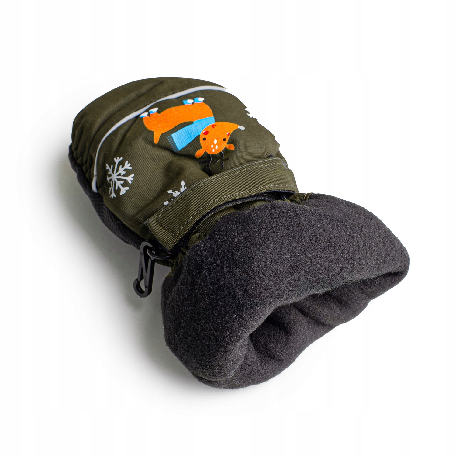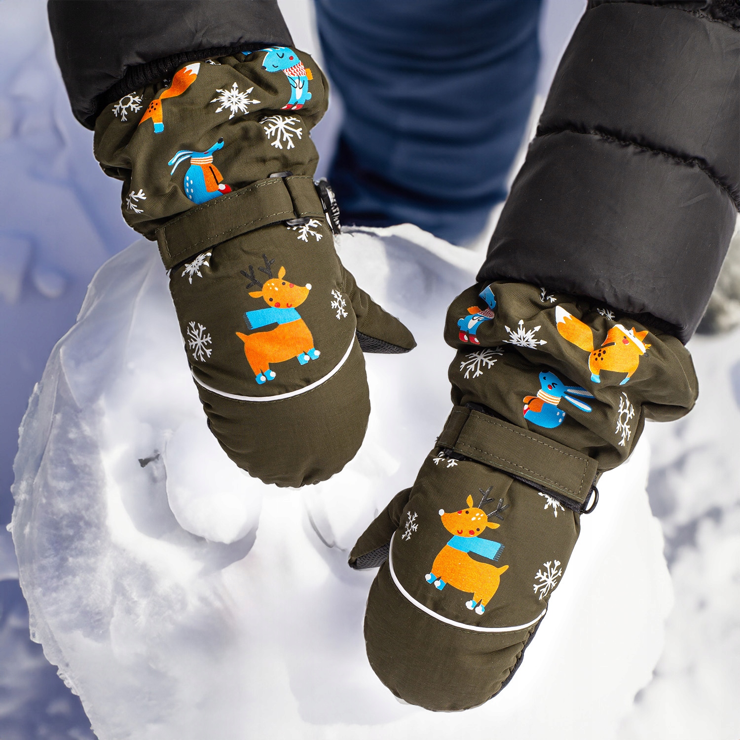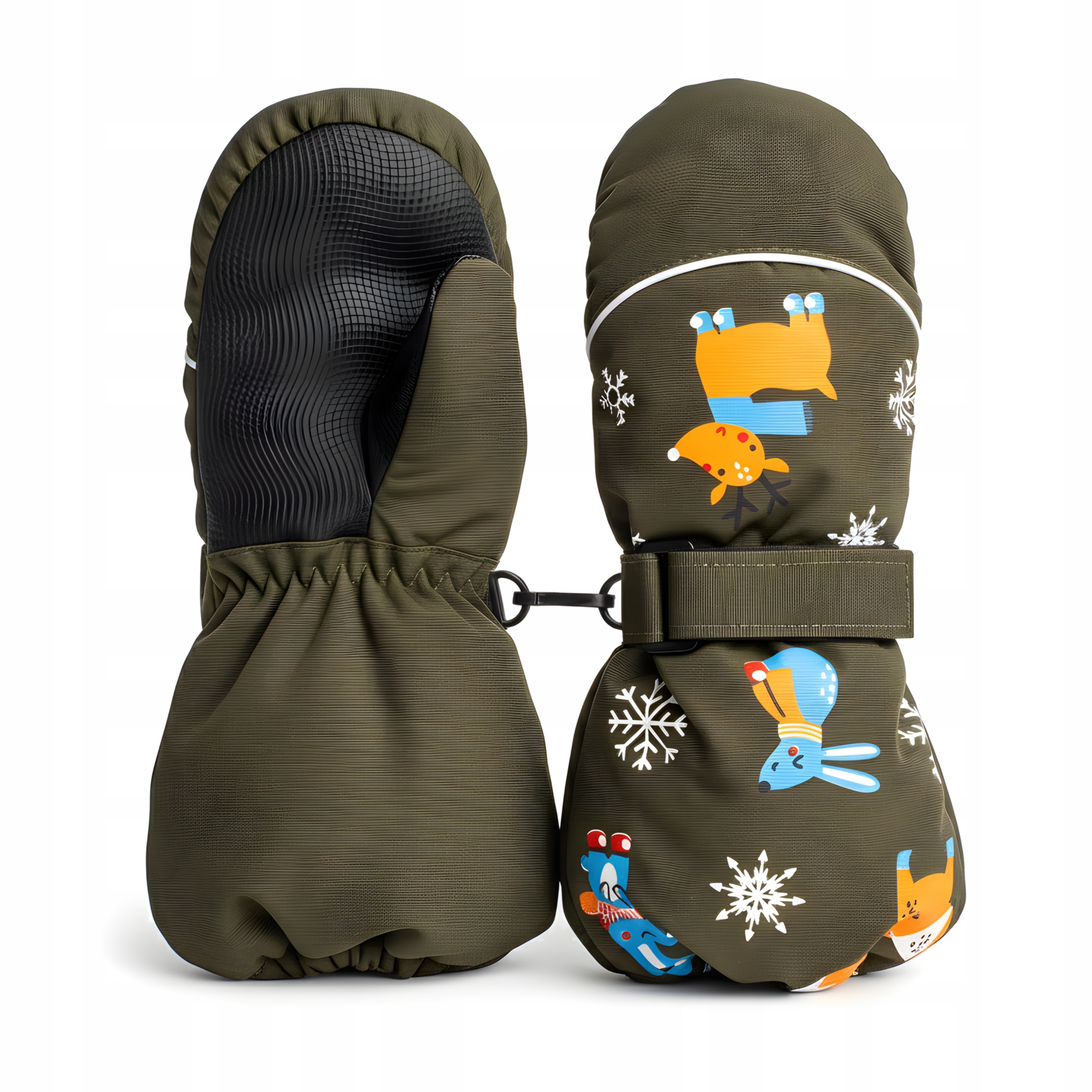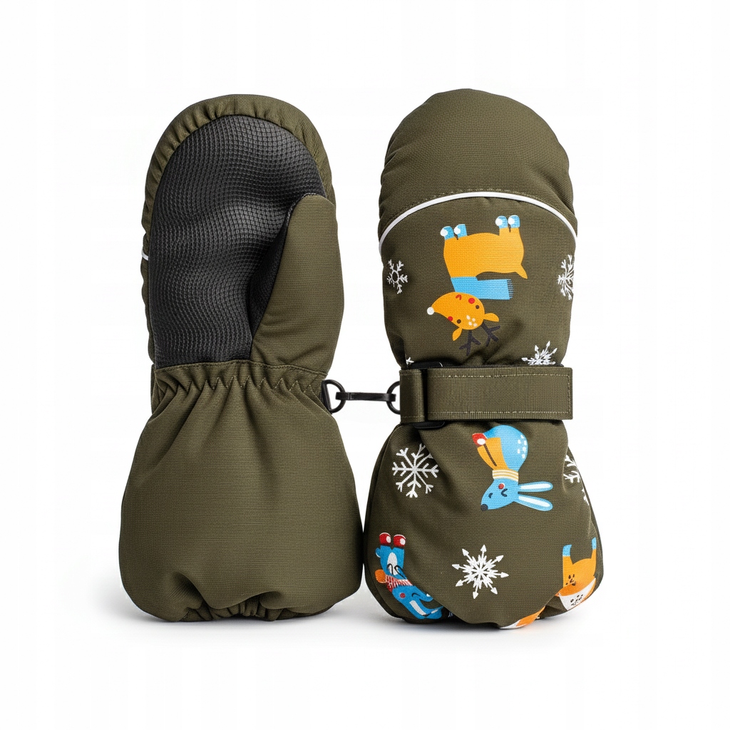 Універсальний оливковий колір із веселим тваринним принтом робить рукавички чудовим вибором як для хлопчиків, так і для дівчаток.