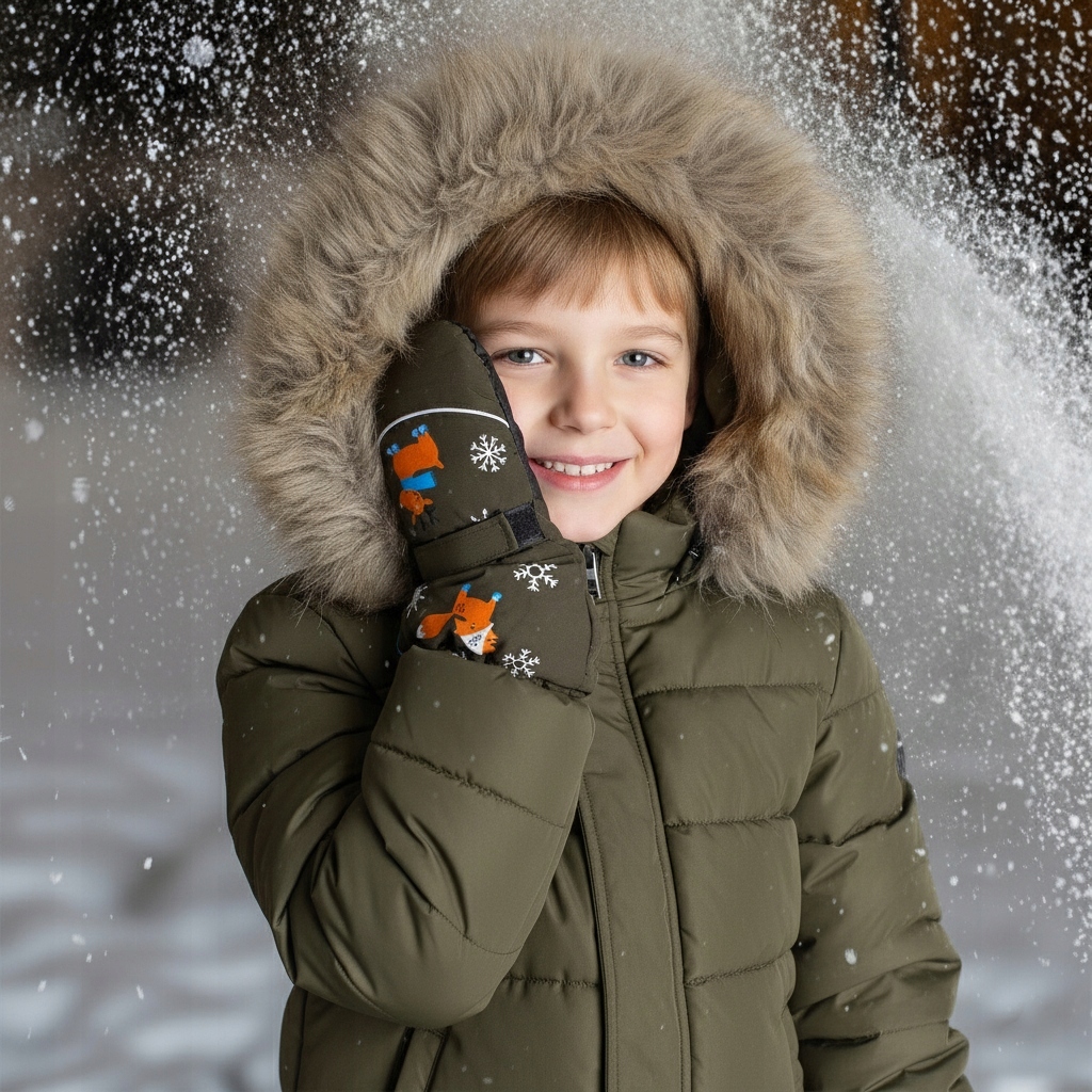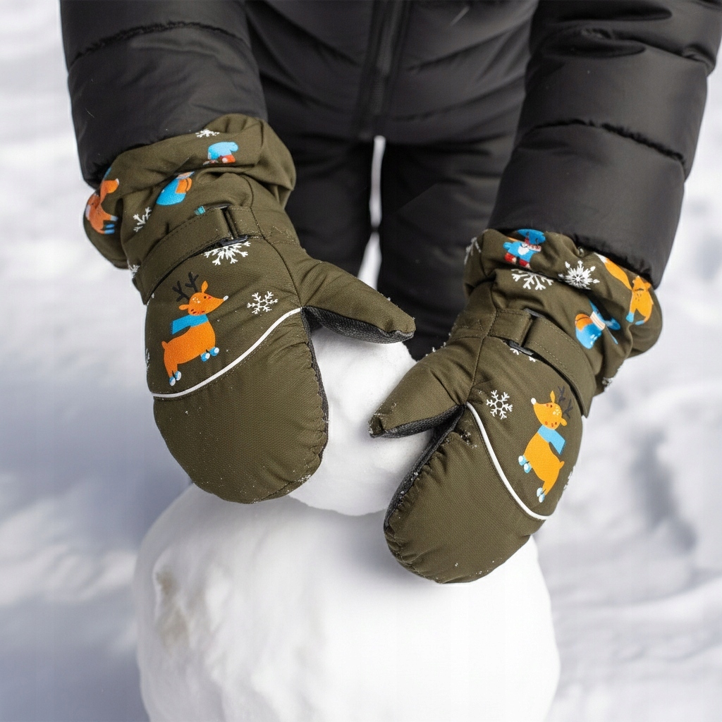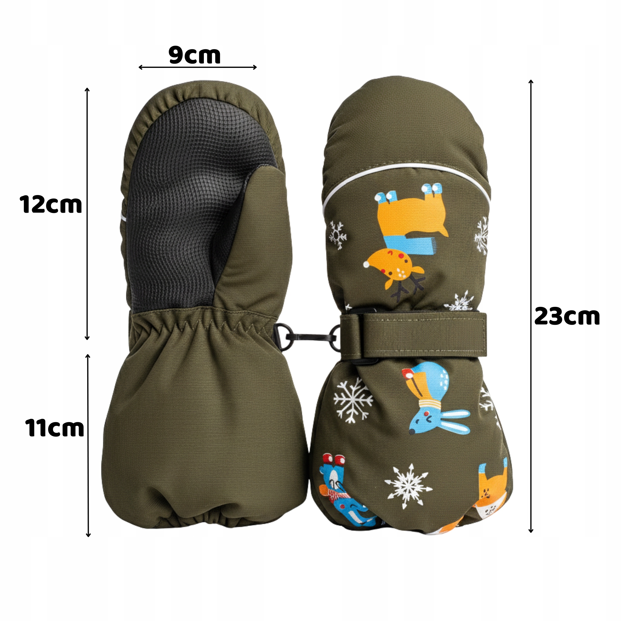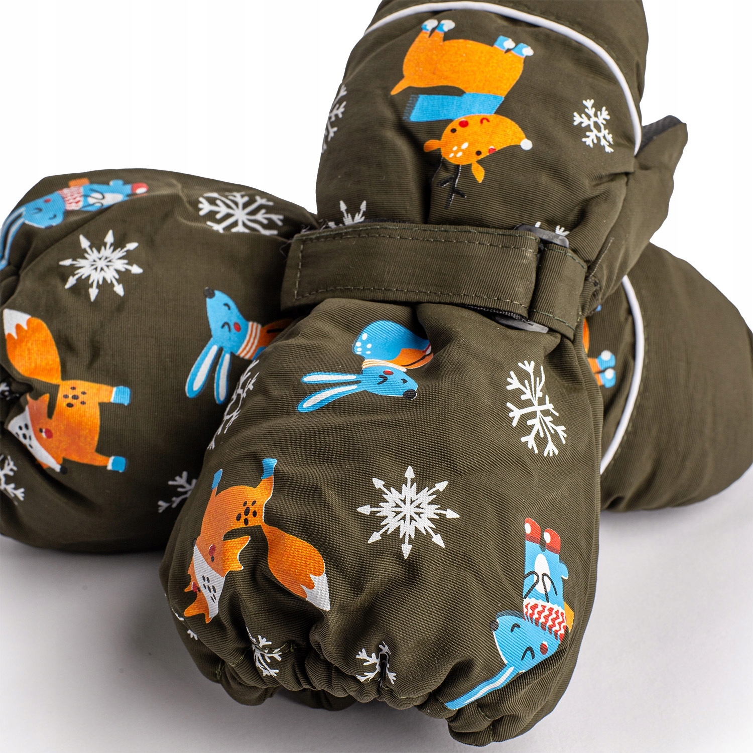Універсальний оливковий колір із веселим тваринним принтом робить рукавички чудовим вибором як для хлопчиків, так і для дівчаток.