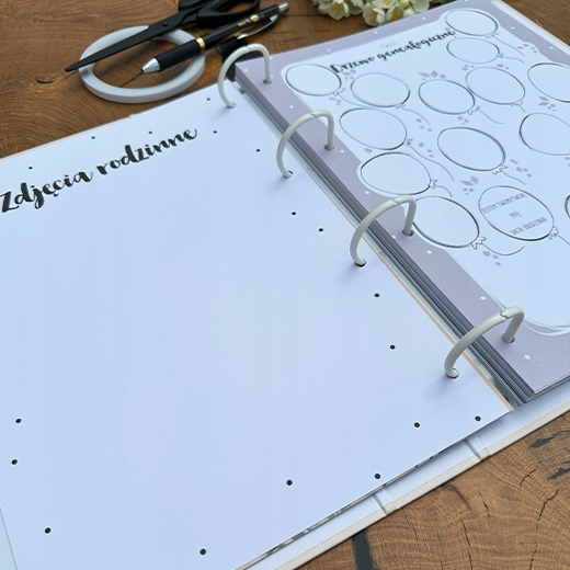 Ми знаємо, що сьогоднішні батьки мало часу, саме тому наш альбом у формі в'яжучого дозволяє гнучко додавати вміст та створювати власні, унікальні історії. Наші заголовки та вміст нічого не нав'язують, тому ви можете відчувати себе справжніми артистами та авторами. Навіть якщо ви вирішили його трохи пізніше, майже всі сторінки можуть бути використані для поточних спогадів.