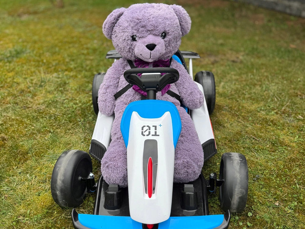 Картинг оснащено 2 х 24 В 200 Вт і акумулятором 12 В 7 Ач, що забезпечує достатню потужність і час водіння. Має панель управління з функціями старт/стоп (з реалістичним звуком двигуна), вперед і назад, регулювання гучності, відтворення мелодій і звукових ефектів. Завдяки функції Bluetooth ви також можете підключити зовнішній пристрій.