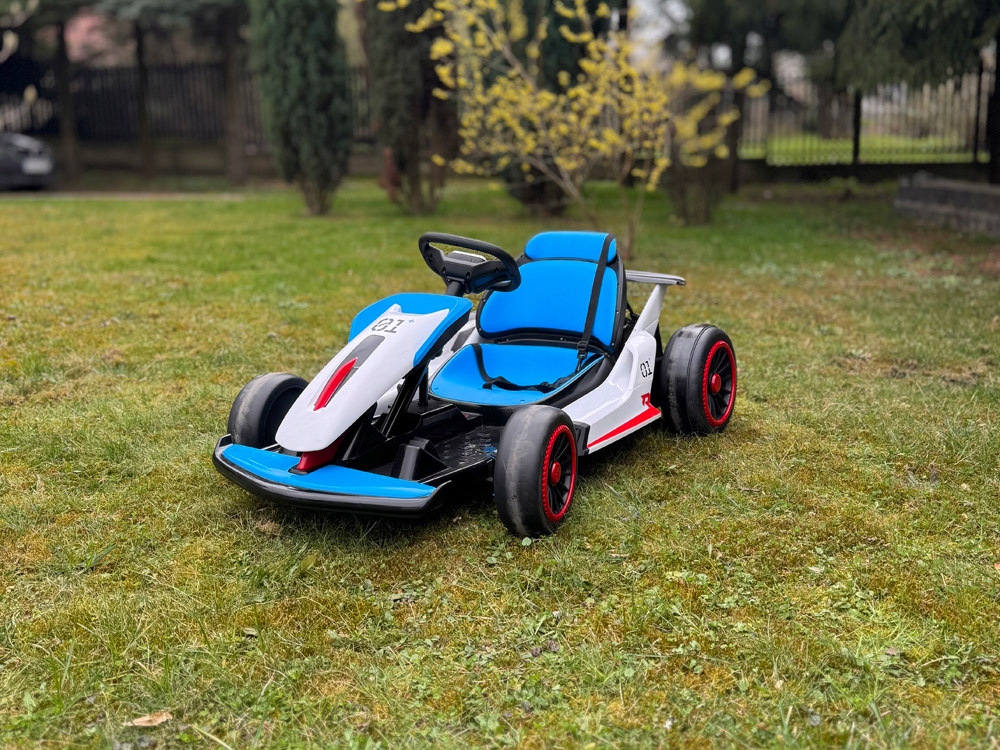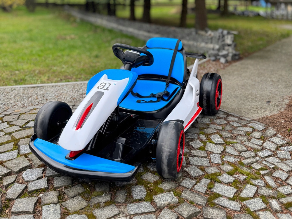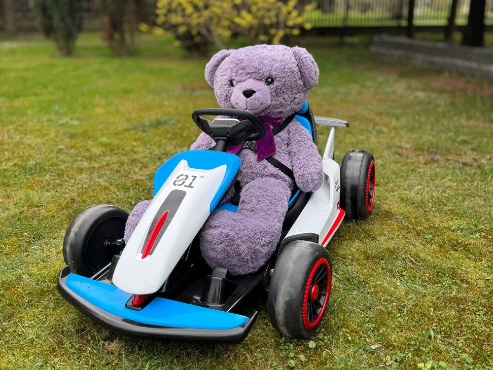 Картинг на акумуляторі - ідеальний вибір для маленьких любителів спортивних автомобілів. Він забезпечує комфорт і безпеку завдяки міцній металевій рамі, пластиковому корпусу, ергономічному сидінню та спортивному стилю. Ковшеподібне сидіння з 5-точковими ременями безпеки забезпечує додатковий комфорт під час водіння.
