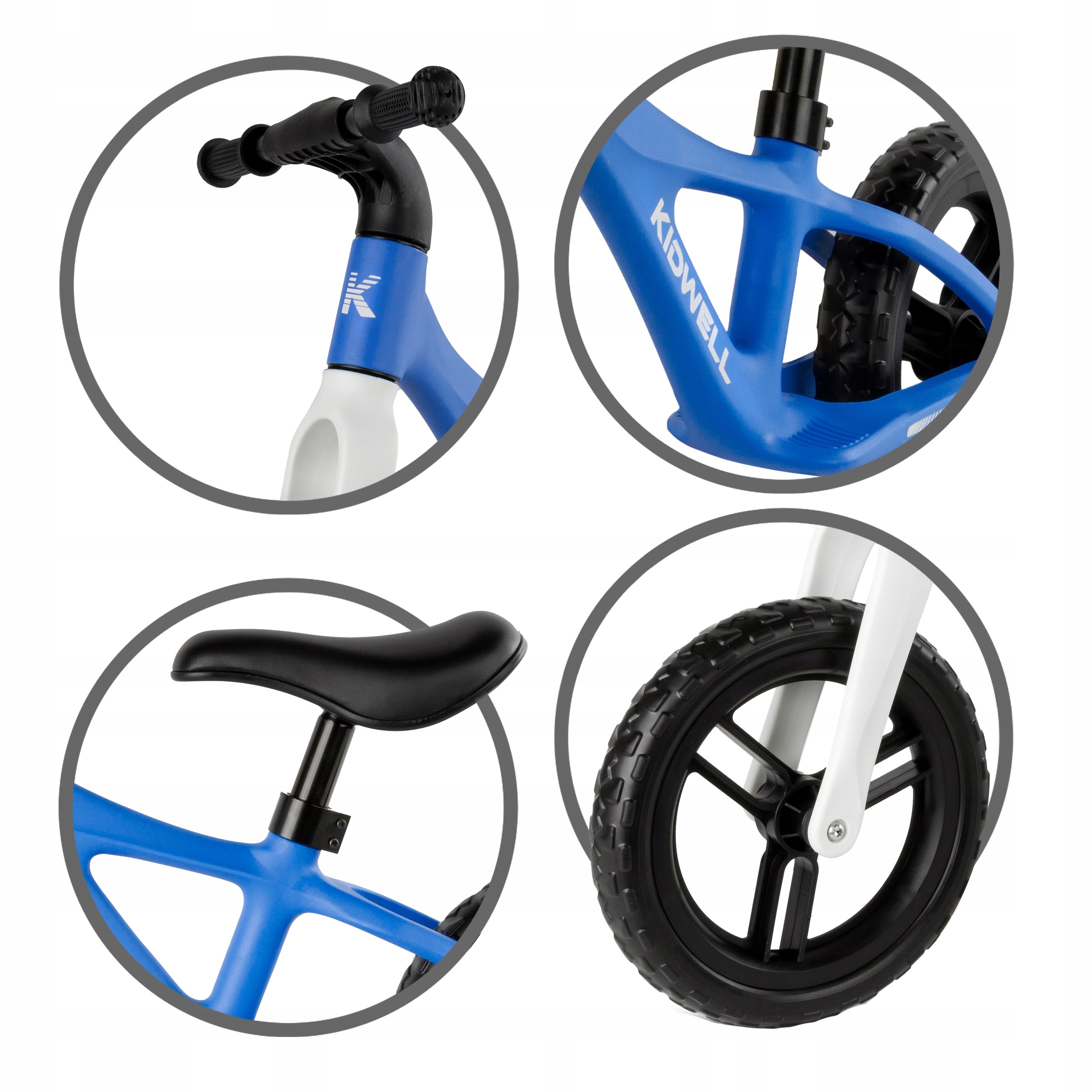 Ергономічне сідло з м'яким наповнювачем забезпечує комфорт навіть під час тривалих поїздок. Регульована висота дозволяє велосипеду Kidwell JOGO підлаштовуватися під зріст дитини, забезпечуючи йому кілька років захоплюючих розваг!