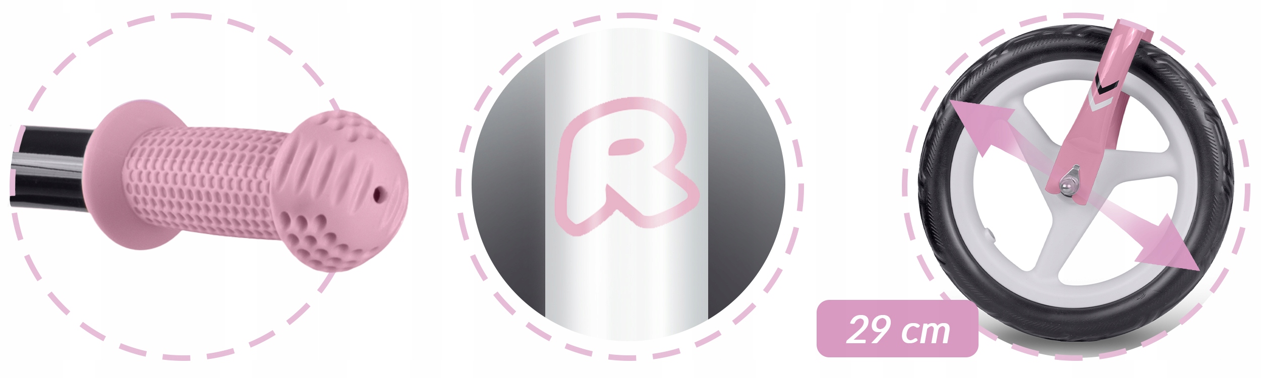 • простіше скрутити: обертове коло 360 градусів дозволяє дитині швидко і точне скручування в будь -якому напрямку, без необхідності підняти переднє колесо або виконувати більші переміщення тіла.