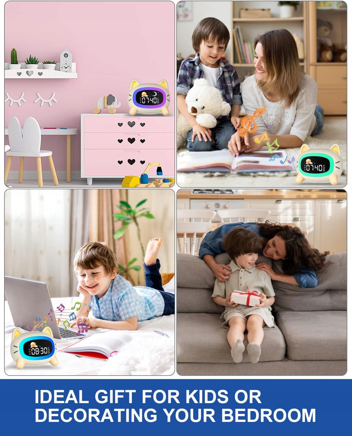 - Світло, портативний та простий у використанні: цей будильник для дітей, як для дівчат, так і для хлопців, має стильний та сучасний дизайн, легкий і простий у перенесенні. 10 окремих кнопок дозволяють легко змінювати пісню, увімкнути/вимкнути ліжко, змінювати колір світла навколишнього середовища і навіть встановити таймер за кілька секунд.