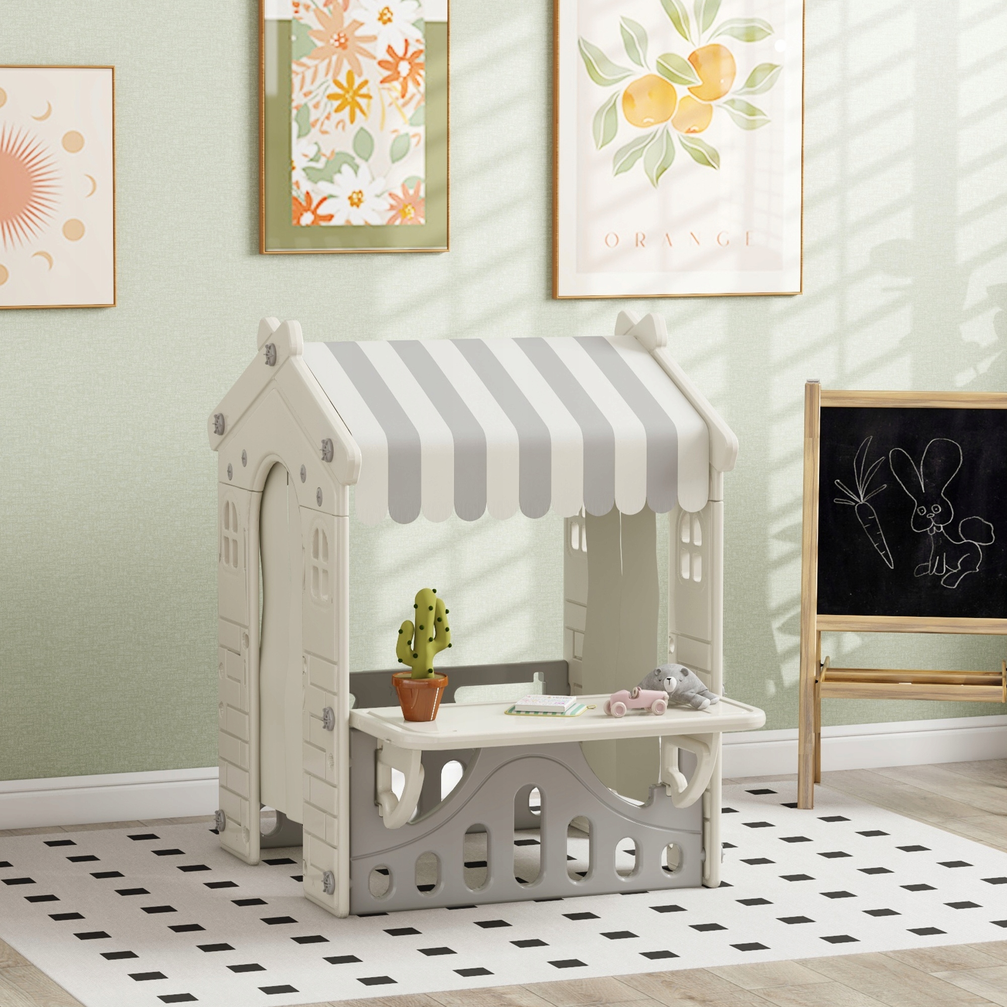 Розбудіть уяву вашої дитини з ігровим будиночком AIYAPLAY! Сучасний дизайн, стильні вікна, декоративний вхід і чарівні деталі в стилі цегли роблять це місце ідеальним фоном для творчих ігор. Унікальний куточок продажів заохочує нескінченні ролі - від продавця до клієнта. Ідеально підходить для використання в приміщенні, він легко переміщується з кімнати в кімнату, приносячи радість і творчість у будь-який дім. Перетворіть розвагу на незабутню пригоду!