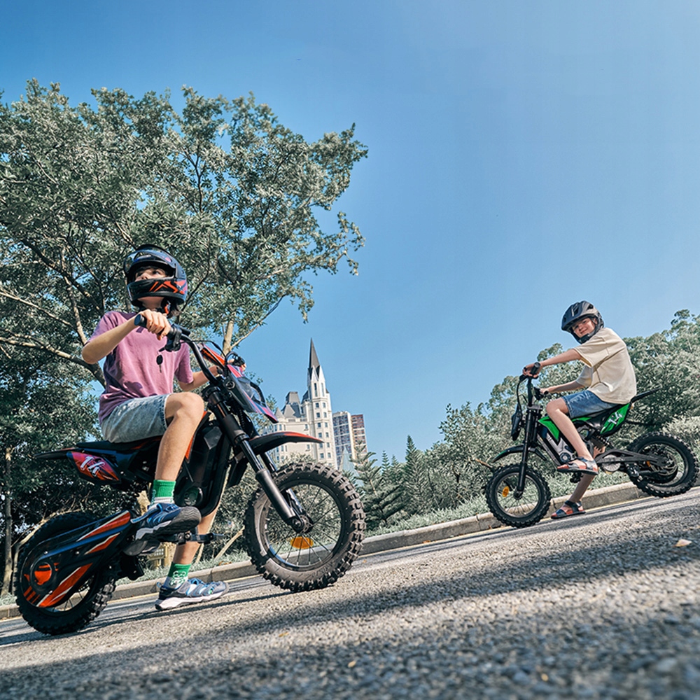 Розроблений спеціально для дітей, мотоцикл A14 є справжнім спортивним партнером, який пропонує захоплюючий досвід їзди. Цей потужний мотоцикл оснащений потужним двигуном 500 Вт, який забезпечує гладку та тихій їзді, що дозволяє дитині насолоджуватися їздою в будь -який час і де завгодно. Три режими швидкості (ECO: 8 км/год, нормальний: 13 км/год, спорт: 27 км/год) дозволяють дітям регулювати свій стиль водіння, забезпечуючи безпеку та розваги.
