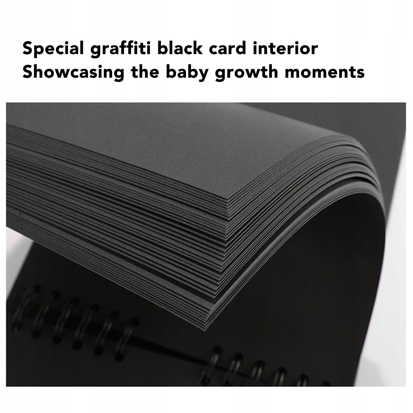 Функція:1. Чорний інтер’єр: Baby Peeptsake Memory Book має спеціальний графіті Black Card Interior design, щільний і твердий, що відображає моменти росту дитини, які непросто стерти.