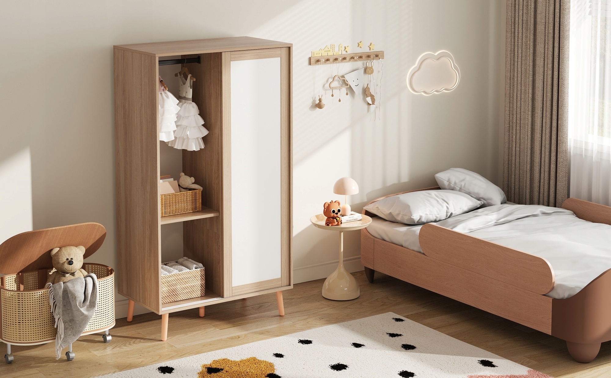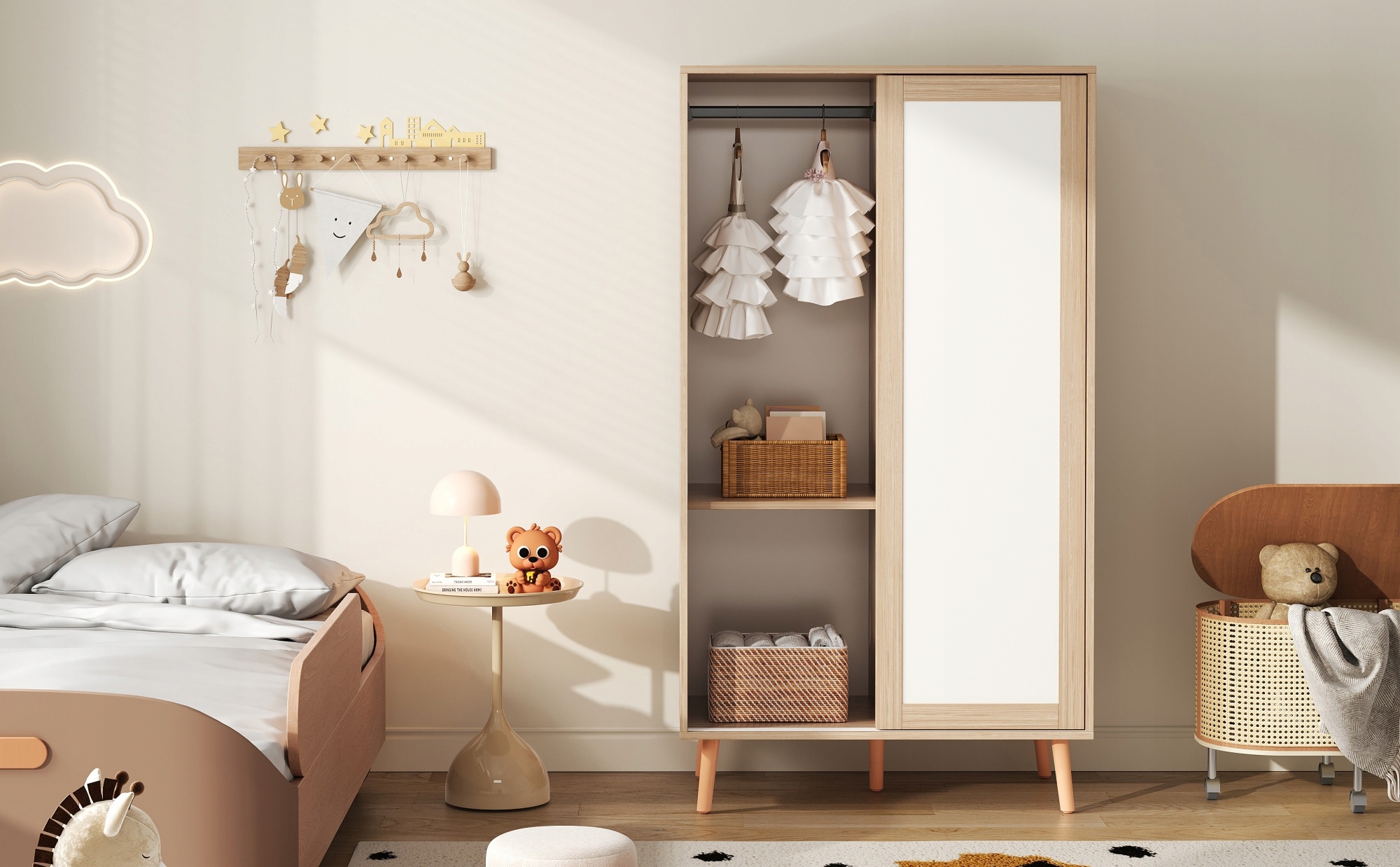 Дитячий гардероб, гардероб із розсувними дверима та палицею для одягу