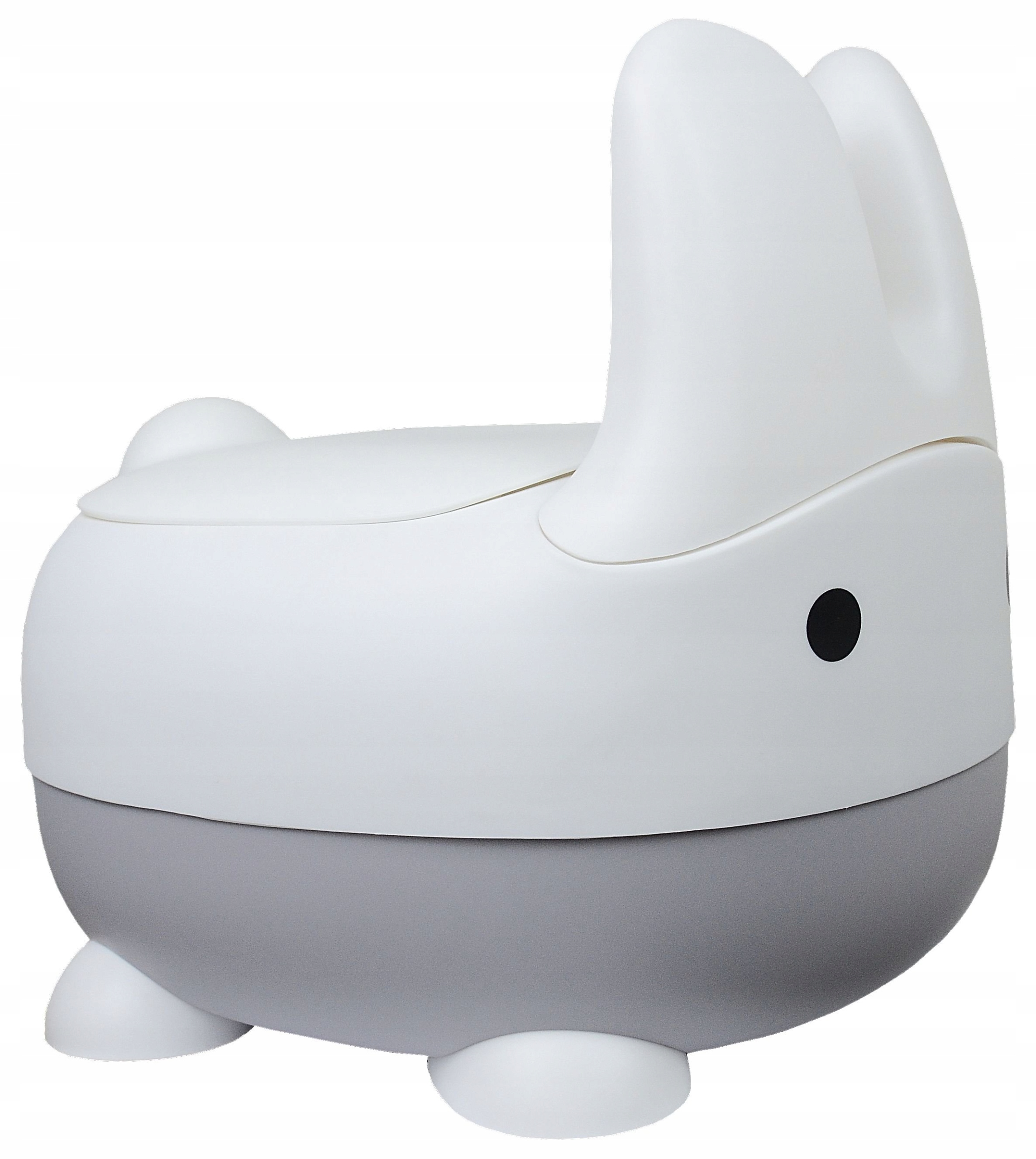 Сучасний, практичний і функціональний горщик для малюка у вигляді зайчика зі спинкою - найкращий стимул вчитися водити горщик;) В універсальному біло-сірому кольорі.