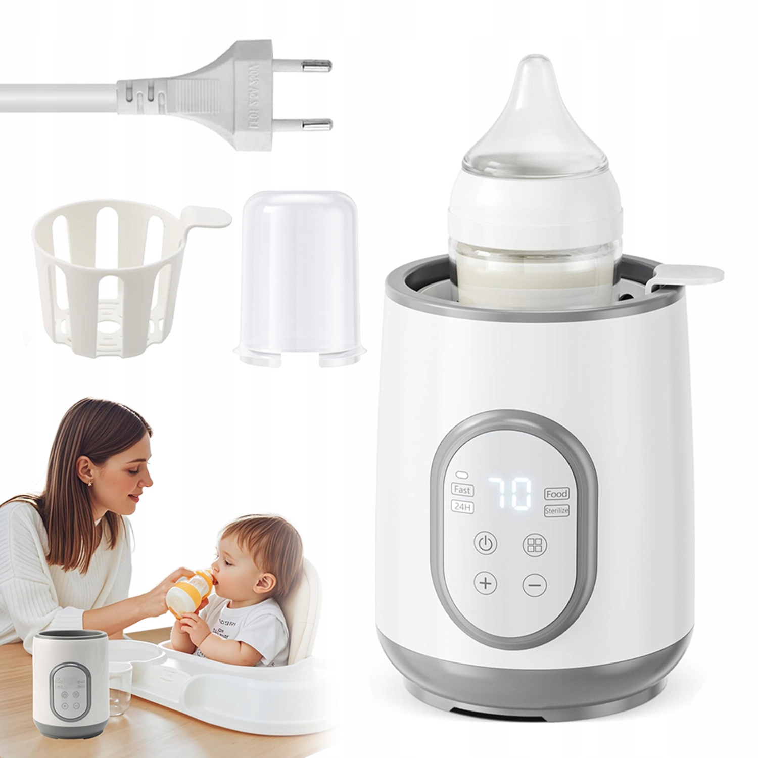 ⚡ Миттєве нагрівання: нагріває молоко до ідеальної температури всього за 2-7 хвилин! Адаптується до типу пляшки, кількості їжі та температури (з холодильника чи кімнати).