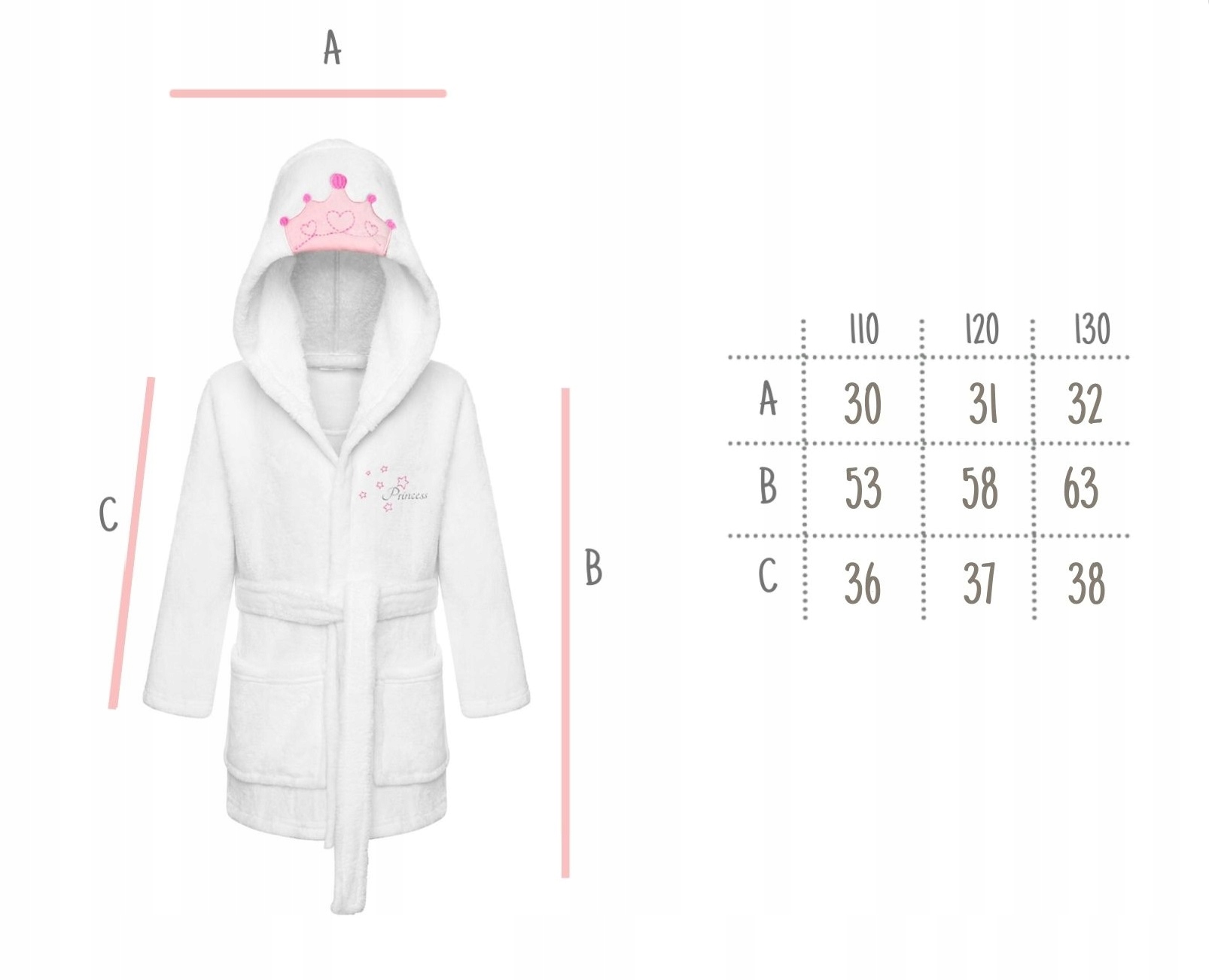 Принцеса дитячих халатів була виготовлена з високоякісної, м'якої та пухнастої мікрофібри, спеціально зроблена для наймолодших. Він має вагу 240 г/м2, що говорить про оптимальну товщину продукту. Він неймовірно м'який і пухнастий на дотик , а головне, він ідеально обмотує тіло під час прохолодних, осінніх зимових вечорів. Дитячий халат з капюшоном - це теплий , і світло , тому його носять з справжнім задоволенням. Він характеризується яскравими кольорами та ідеальними догляду за деталями - зокрема на капоті.