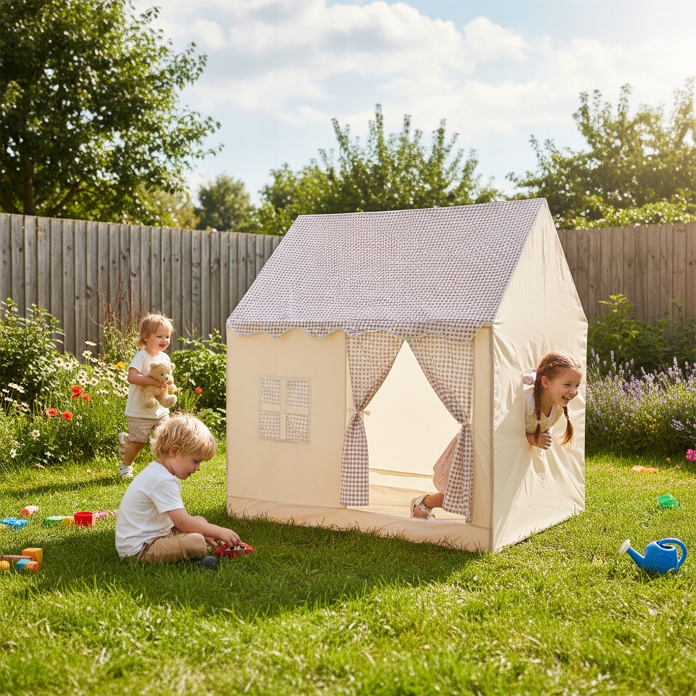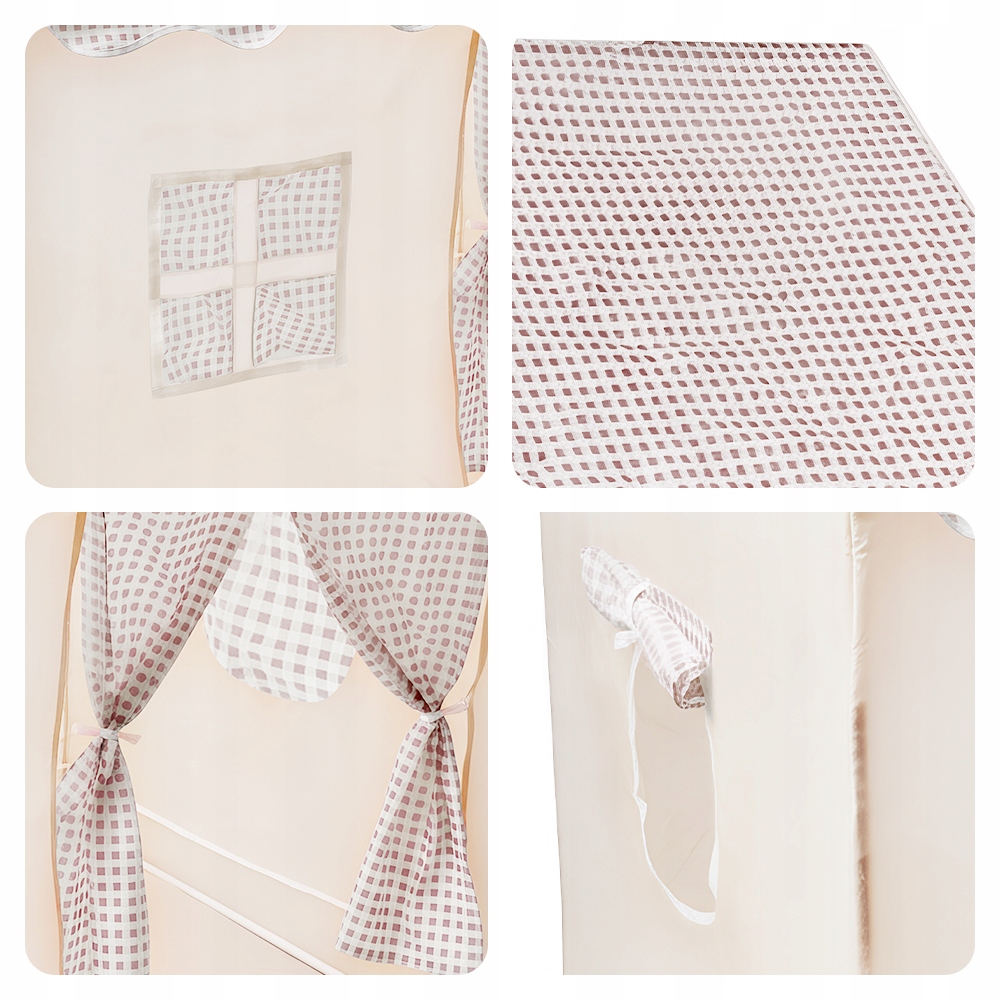 Цей дитячий намет для домашнього використання в елегантних кольорах, виготовлений із текстурованого матеріалу без запаху та приємного до шкіри, стане втіленням мрії кожної дитини про казковий замок. Уявіть собі радість мати свій будинок! Це чудовий спосіб заохотити до творчих ігор, читання та пригод.