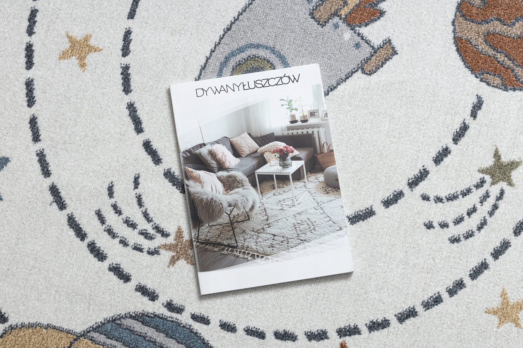 Боновий килим 8288 Космос, планети кремові / антрацит близько 200 см дітей для миття м'якої круглої ракети