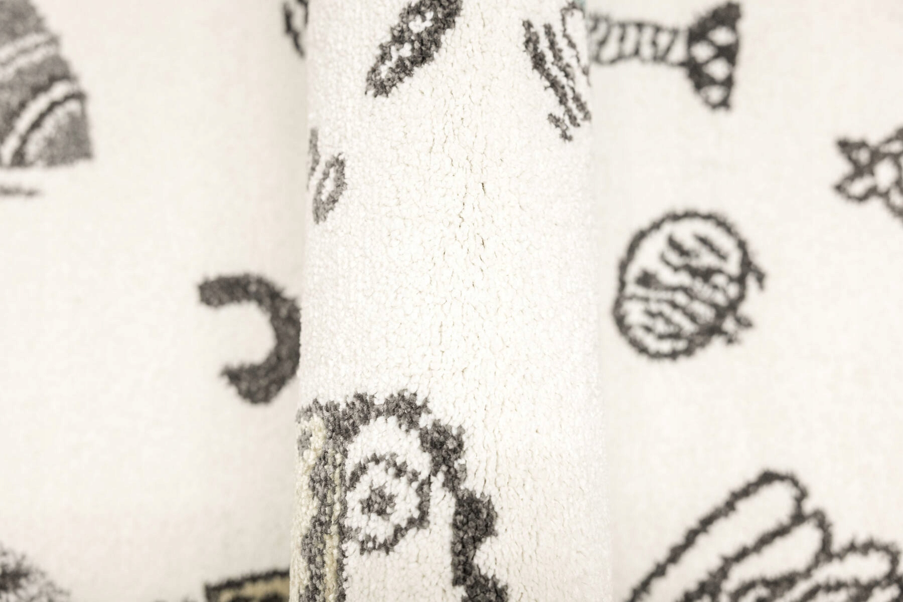 Дитячий килим Lima захоплює своїм креативним малюнком, натхненним космосом. Мотиви роботів, ракет, космічних кораблів, планет і зірок представлені в ніжних пастельних тонах: кремовому, бірюзовому, сірому і жовтому. Світло-кремовий фон ідеально підкреслює деталі, надаючи інтер’єру життєрадісність і водночас сучасність.