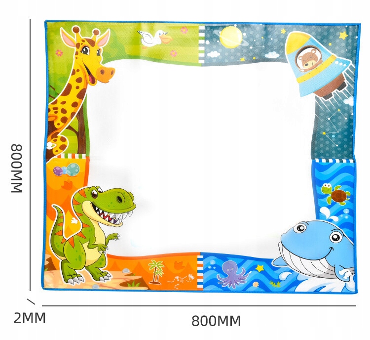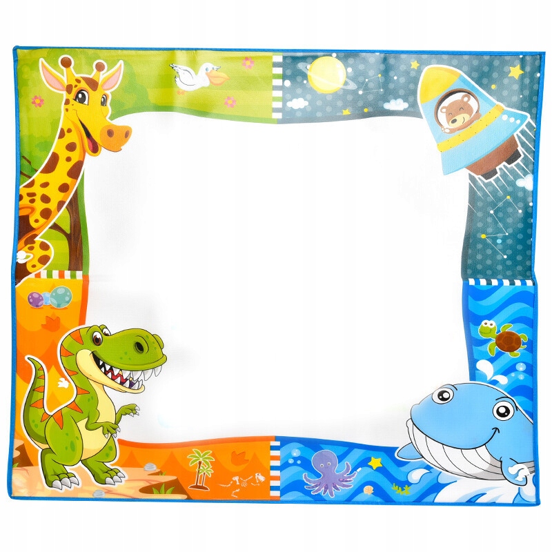 Чарівний килимок для малювання водою — чудова розвага для дітей, яка ніколи не закінчується! Наш набір розважатиме ваших малюків годинами. Щоб малювати на нашому чарівному килимку, достатньо чистої води, тож вам не доведеться турбуватися про плями від маркерів, фарб тощо.