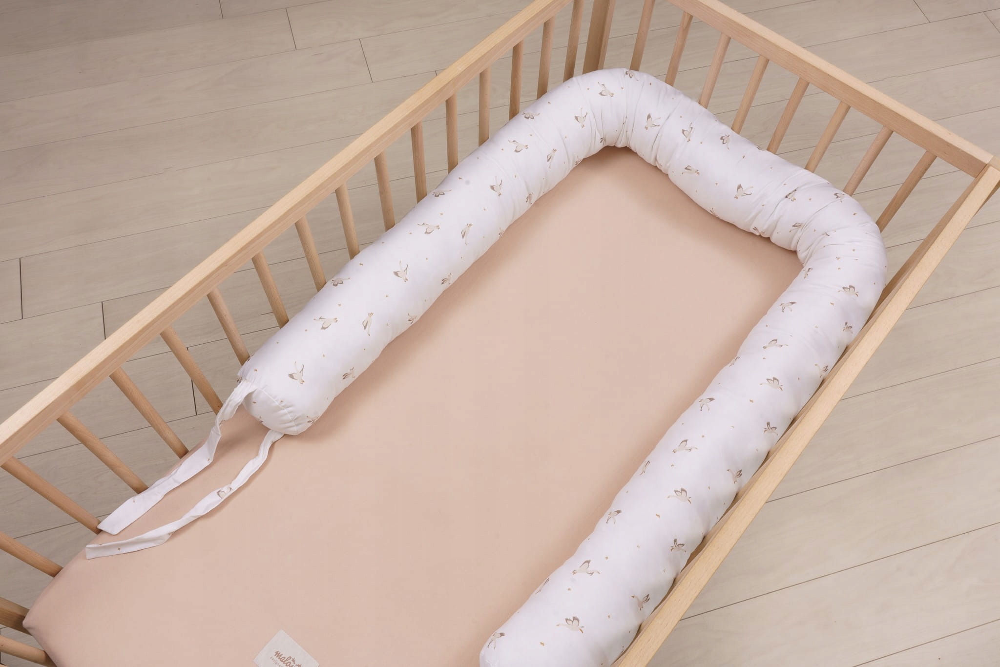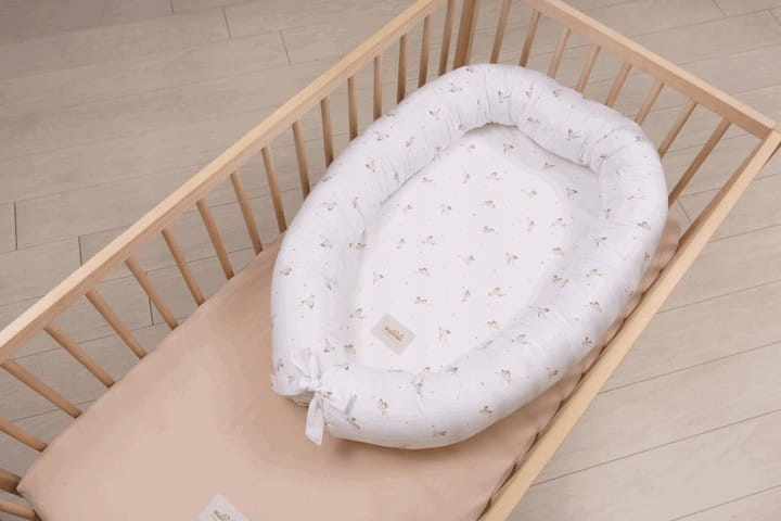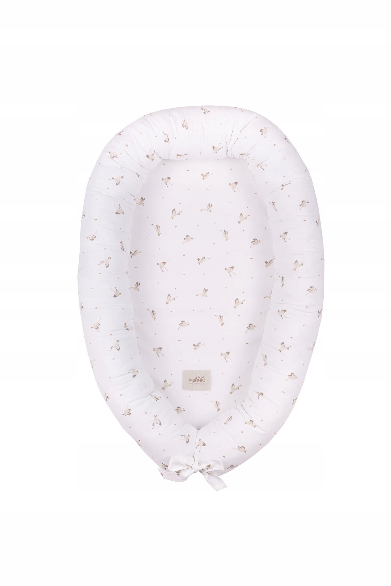 Кокон виготовлений з бавовни з оригінальним принтом у Gąski. У середині боків є силіконова, антиалергічна начинка. Наповнення матраца - це антиаллергічна губка, яка використовується в дитячих ліжечках. Кокон через функцію знімної сторони можна легко промивати, а сторону також можна використовувати як захисник ліжка. Така багатофункціональна зробить кокон тривати довше. Коли малюк виростає з кокона, сторону можна використовувати в ліжечку як захисник. Також покриття матраців видаляється, саме тому воно дуже чисте.