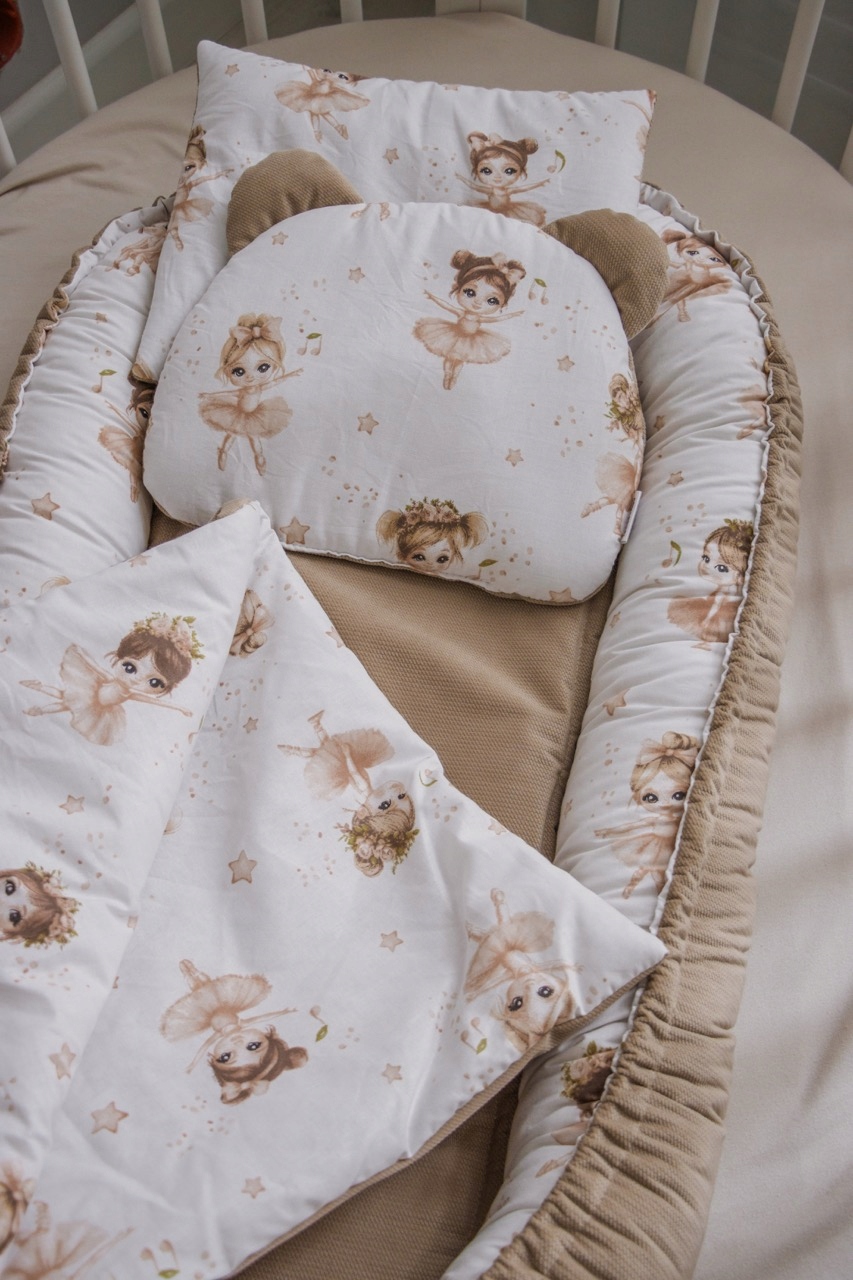 - у ліжку батьків - кокон забезпечує безпечний простір для дитини, захищає його від скочування, здавлювання або втрати під ковдрою (ми рекомендуємо його особливо мамам, які сплять з дитиною),
