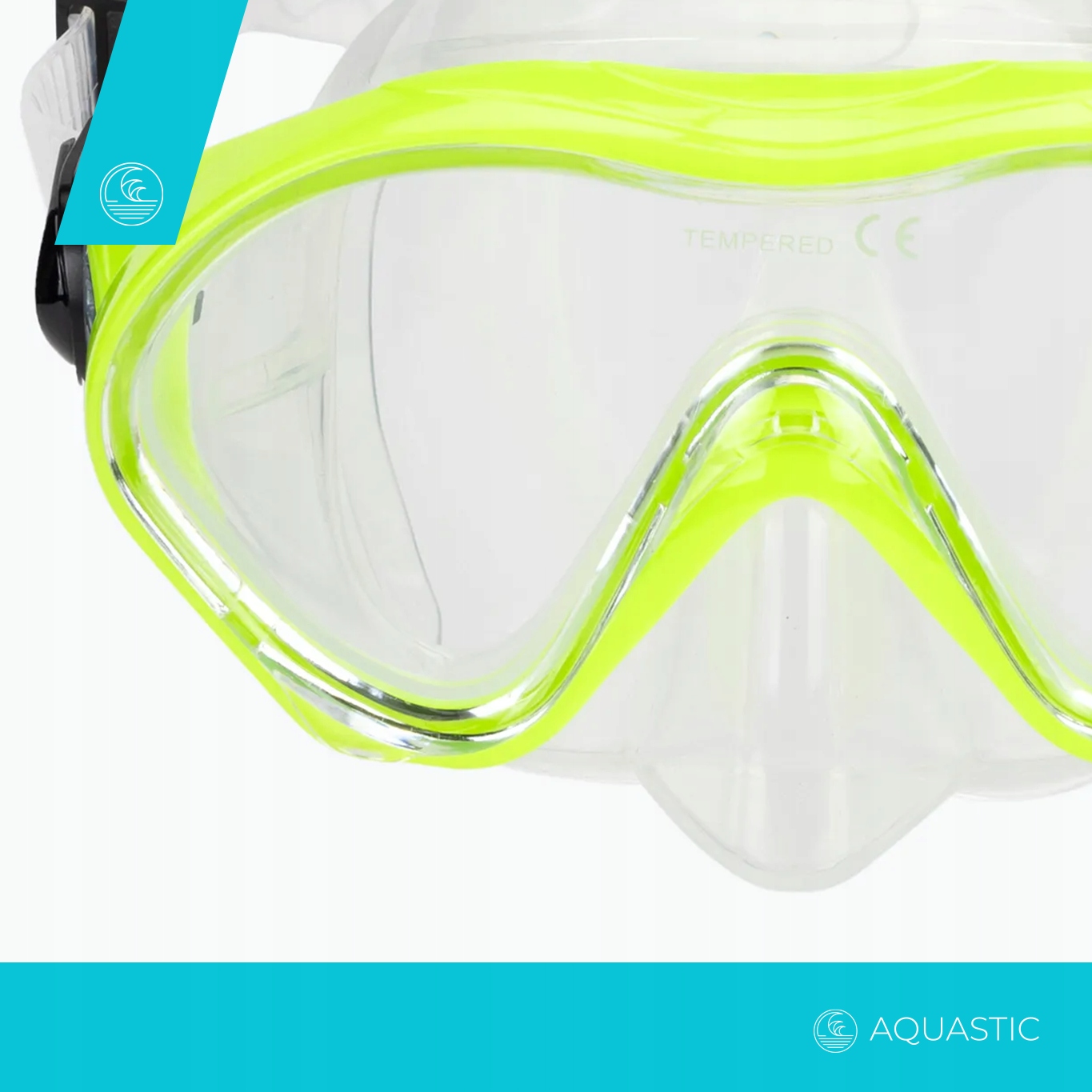 Маска в наборі Aquastic Minke оснащена одним загартованим склом. Загартоване скло гарантує виняткову прозорість, що дозволяє дітям насолоджуватися чітким видом під водою. Крім того, загартоване скло дуже міцне і стійке до подряпин, що забезпечує тривалий термін використання та безпеку під час дайвінгу.