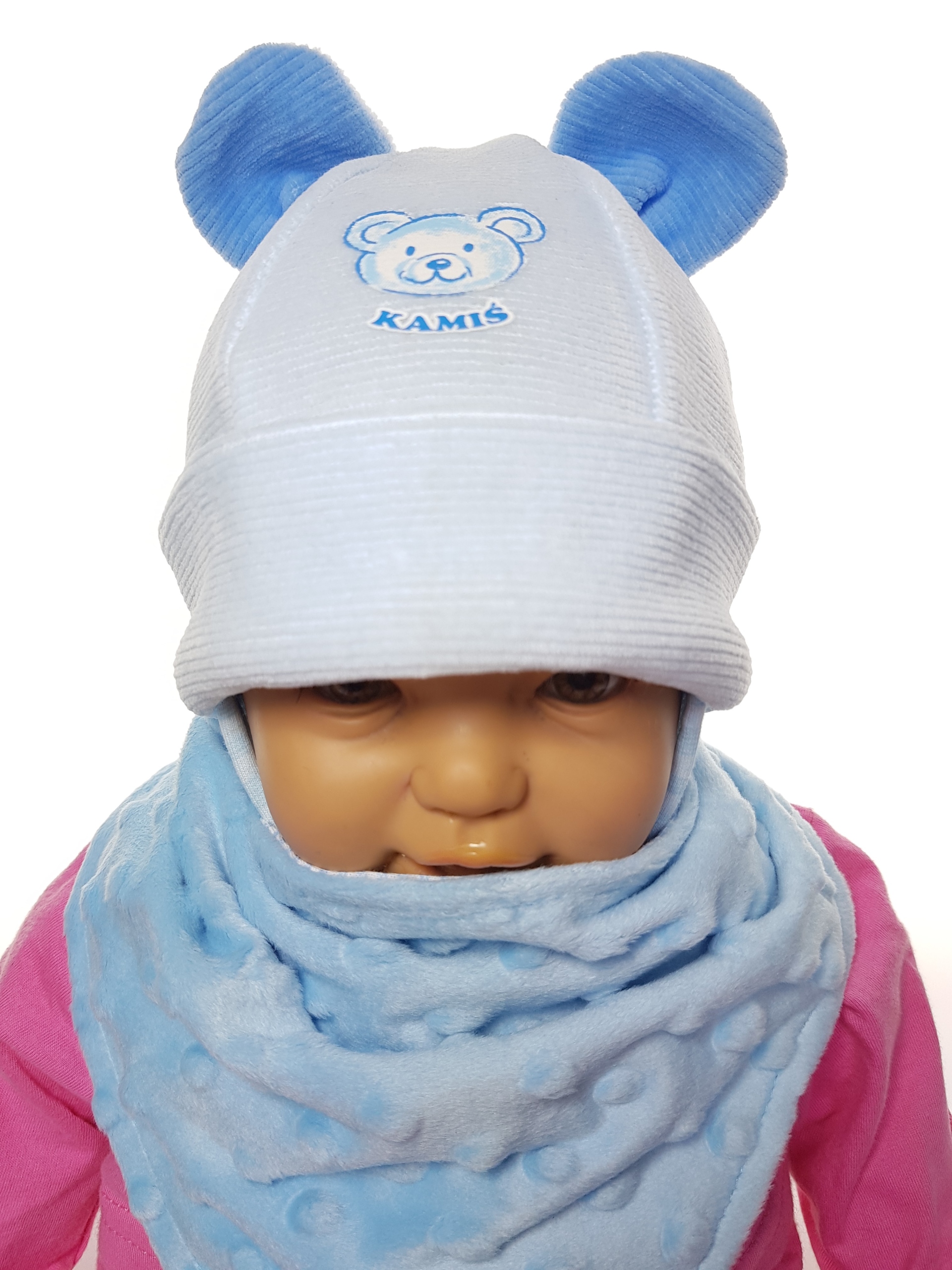 ДИТЯЧИЙ КОМПЛЕКТ ШАПКА ВЕДМЕДИЧКА ВУШКА ВЕЛЮРОВА + ХУСТИНКА 0-12MC 8 КОЛІРІВ
