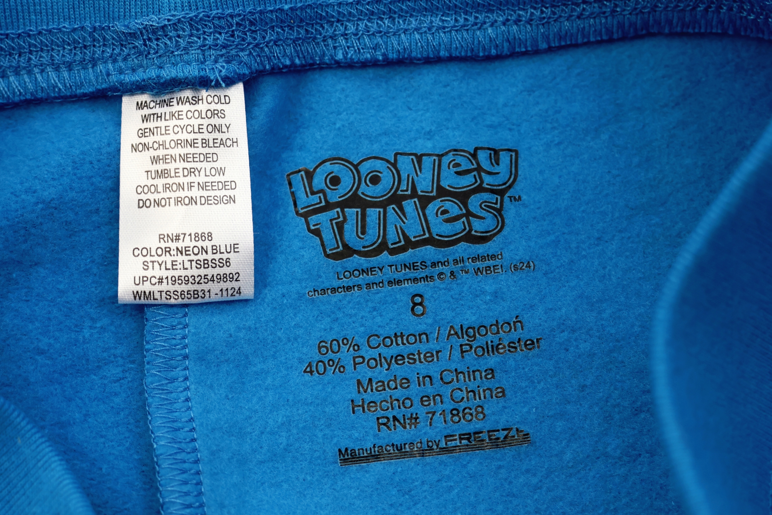 - З капюшоном і великим кольоровим принтом із персонажами Looney Tunes (наприклад, Багз Банні, Tweety, Daffy Duck)