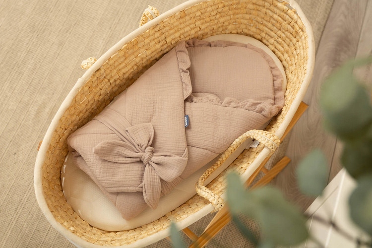 Двостороннє сповивання було створено для новонароджених і немовлят. Застібка на липучці дозволяє зручно тримати дитину під час годування та засинання. У розкладеному стані пелена можна успішно використовувати як ковдру для ліжечка або коляски. Його також можна використовувати як ігровий килимок. Він виготовлений зі 100% бавовни. Зовні і всередині має муслін, приємний на дотик. Наповнення конуса - ворсиста силіконова тканина.