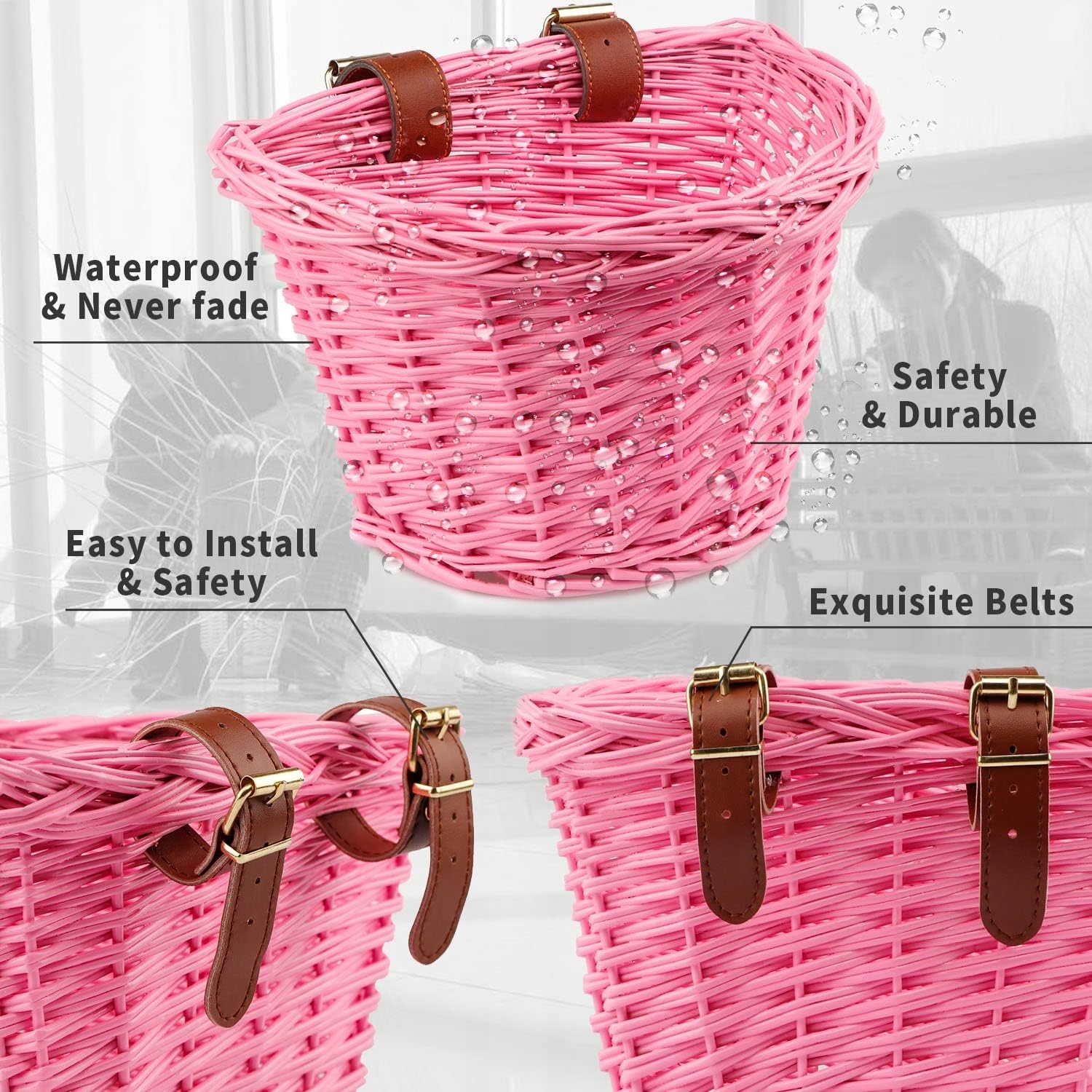 Класичний плетений кошик для велосипеда, більше розваги для дітей, щоб діти могли брати більше своїх улюблених м’яких тварин і кататися на ляльках. Безпечний колір і ретро-стиль гарантують, що діти їздять стильно.