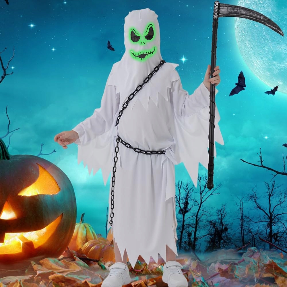 - Найкращий вибір: Дитячий набір костюмів привида — чудовий спосіб доповнити свій костюм. Хеллоуїн, карнавал чи інша вечірка – у цьому моторошному костюмі ви будете добре екіпіровані від початку до кінця. Від привабливого дизайну до зручного одягу та надзвичайної економії, цей набір дитячих костюмів-привидів стане ідеальним подарунком для вас.