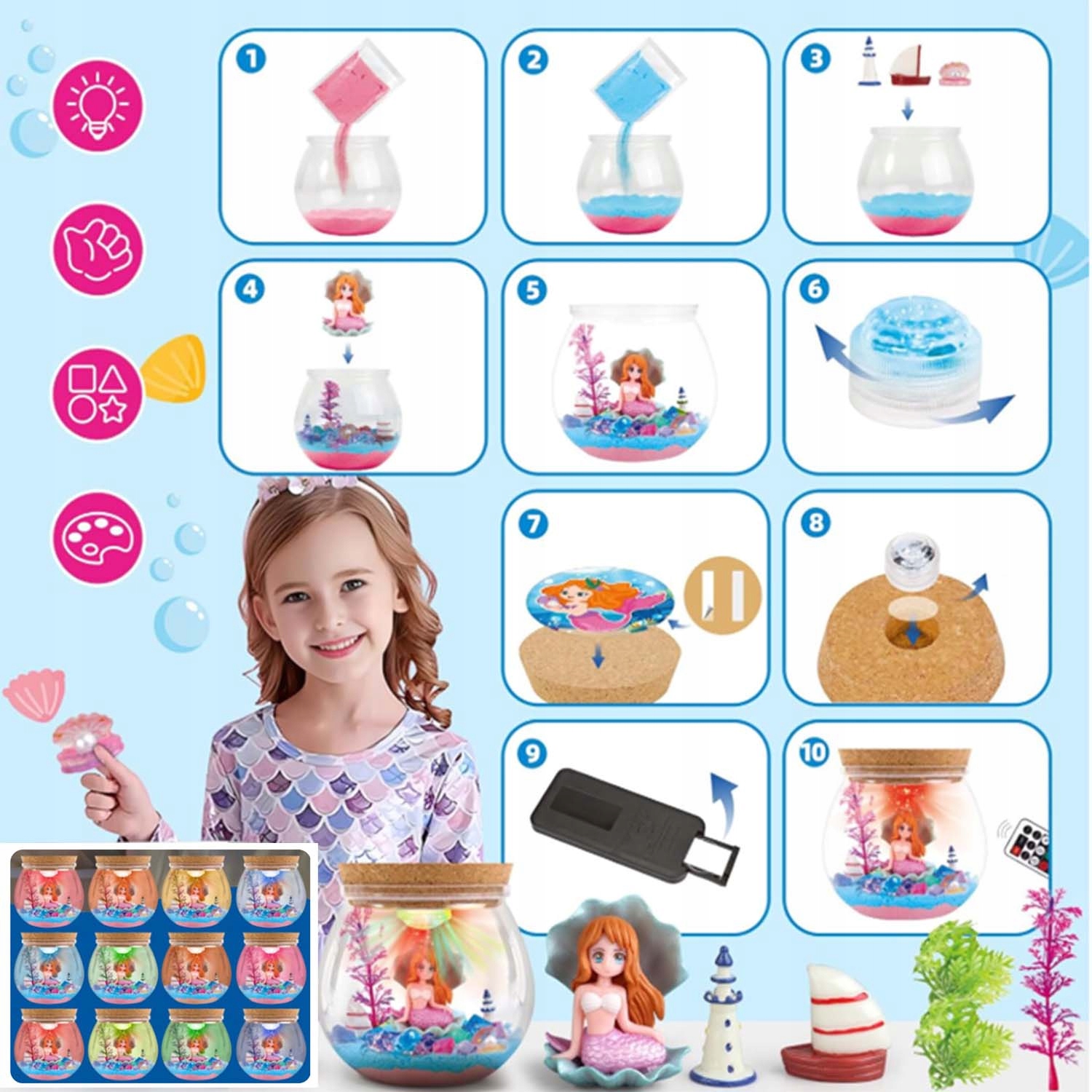 ДИТЯЧИЙ КРЕАТИВНИЙ НАБІР РУСАЛКА НІЧНИК LED ПІДВОДНИЙ САД ДЕКОР