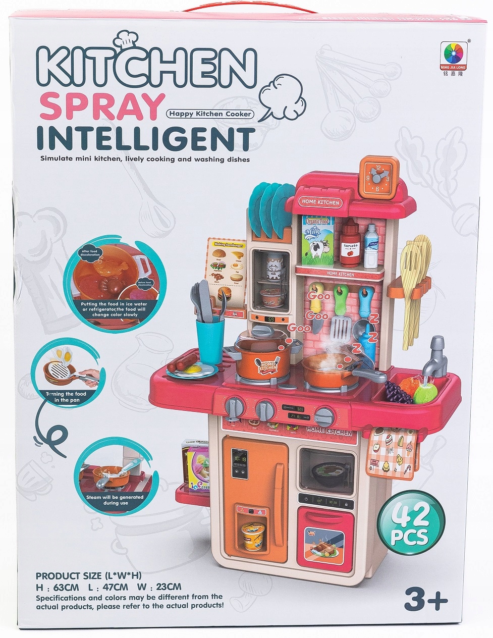 Плита оснащена набором різнокольорового посуду, а також каструлями, столовими приладами, фруктами, овочами та іншими цікавими елементами, які, безумовно, стимулюватимуть творчі здібності та уяву вашої дитини.